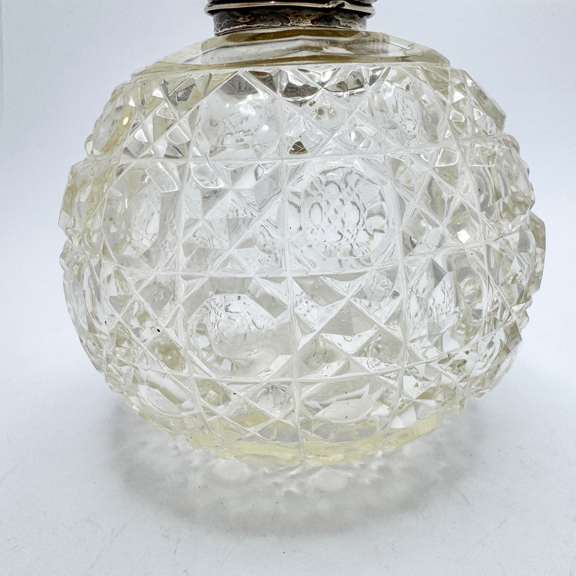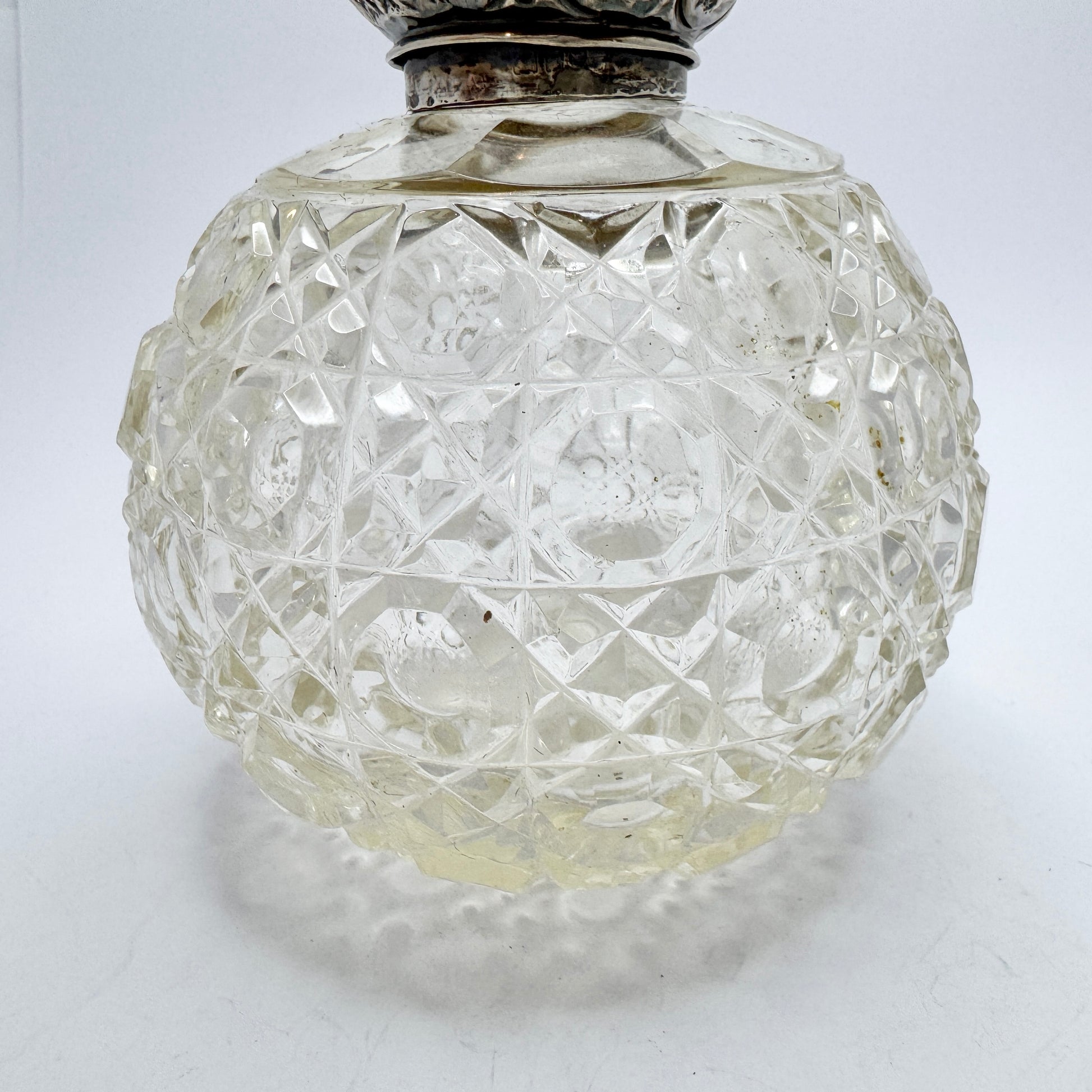 Antique Victorian Silver Top Cut Crystal Perfume Scent Bottle