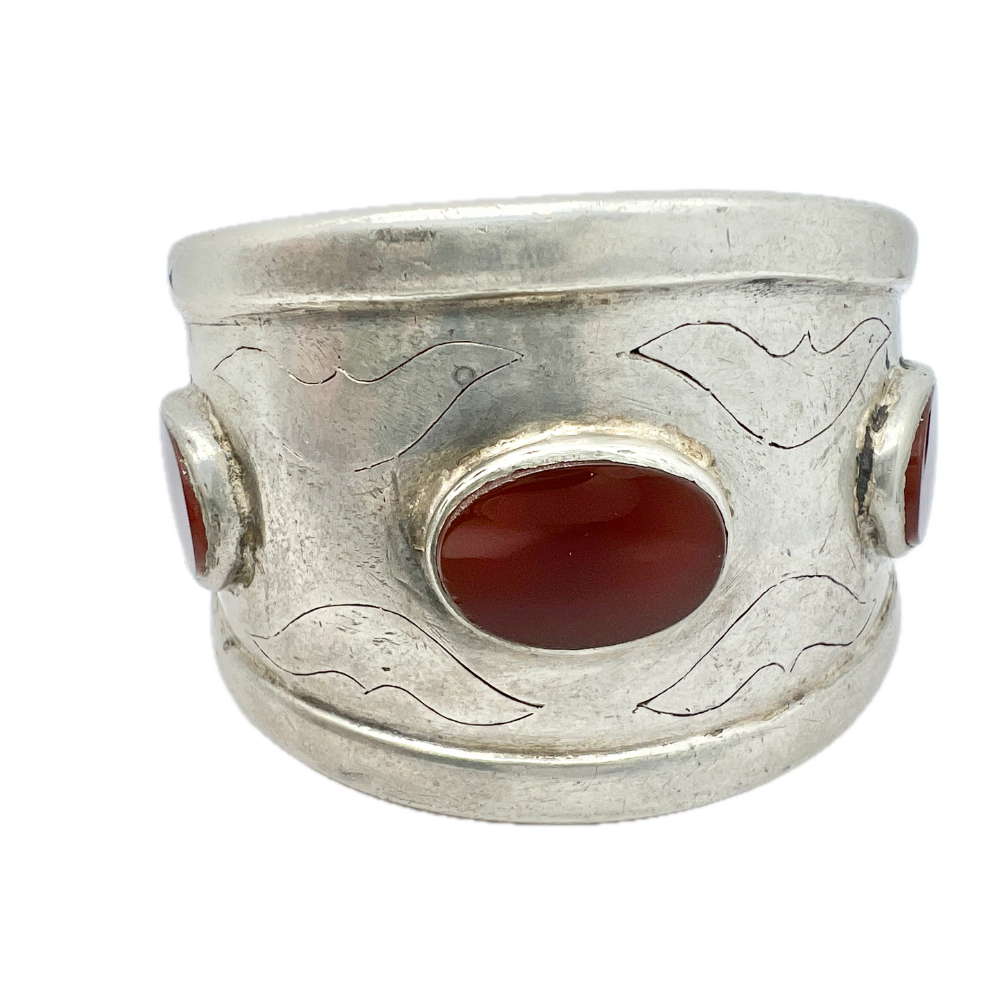 Antique / Vintage Bilezik / Turkmen Chunky Solid Silver Carnelian Cuff Bracelet.