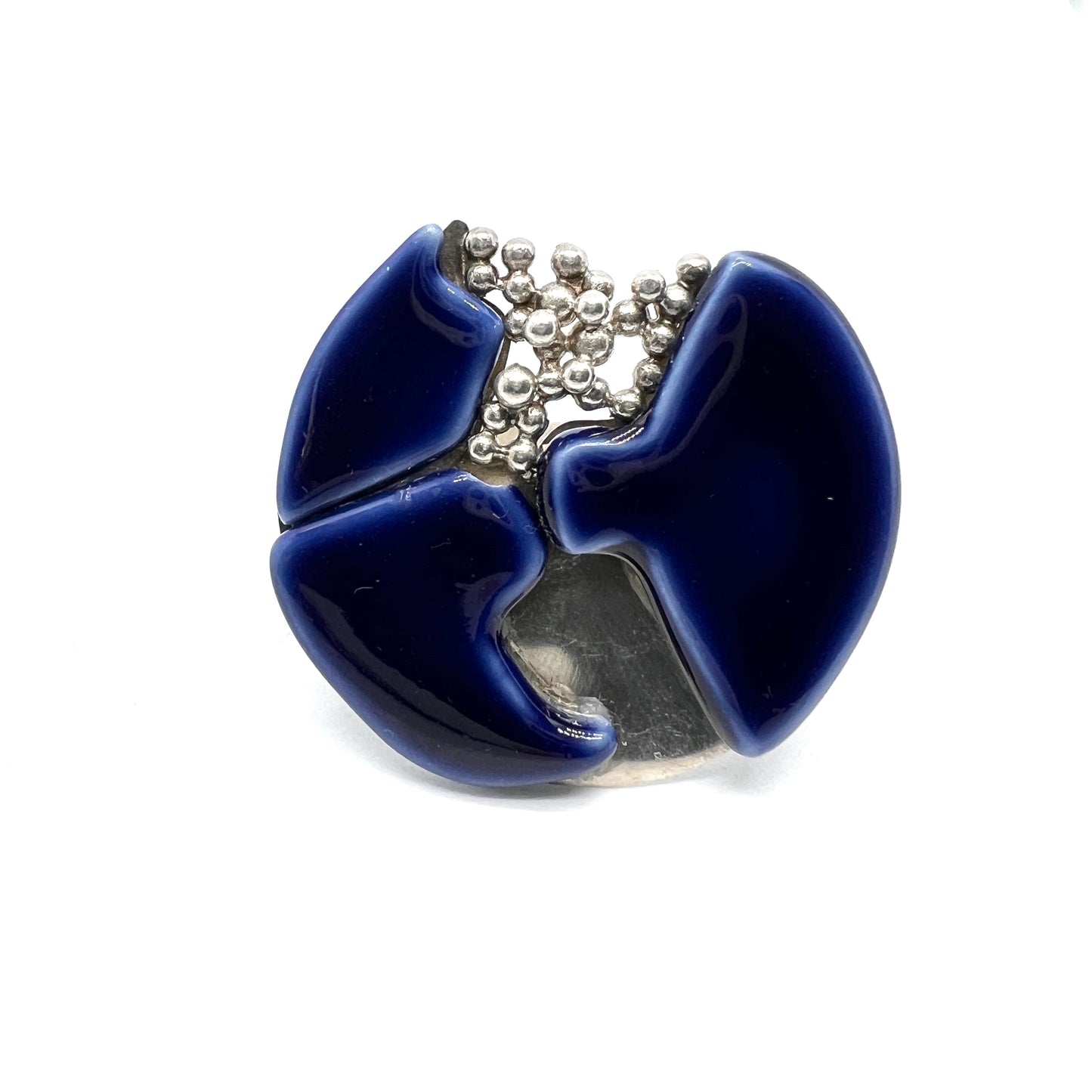 Wonderful, bold and much sought after vintage sterling silver porcelain ring. Hallmarked for renowned Anton Michelsen for Royal Copenhagen. Denmark 1960s.