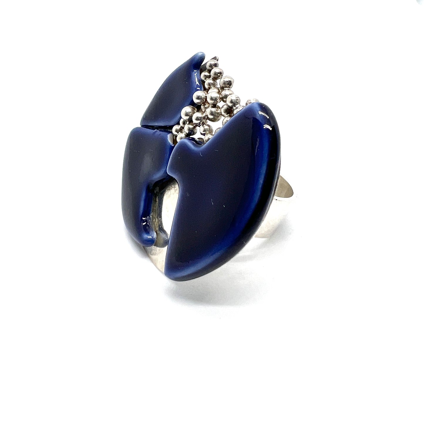 Anton Michelsen for Royal Copenhagen. Denmark 1960s Bold Sterling Silver Porcelain Ring.