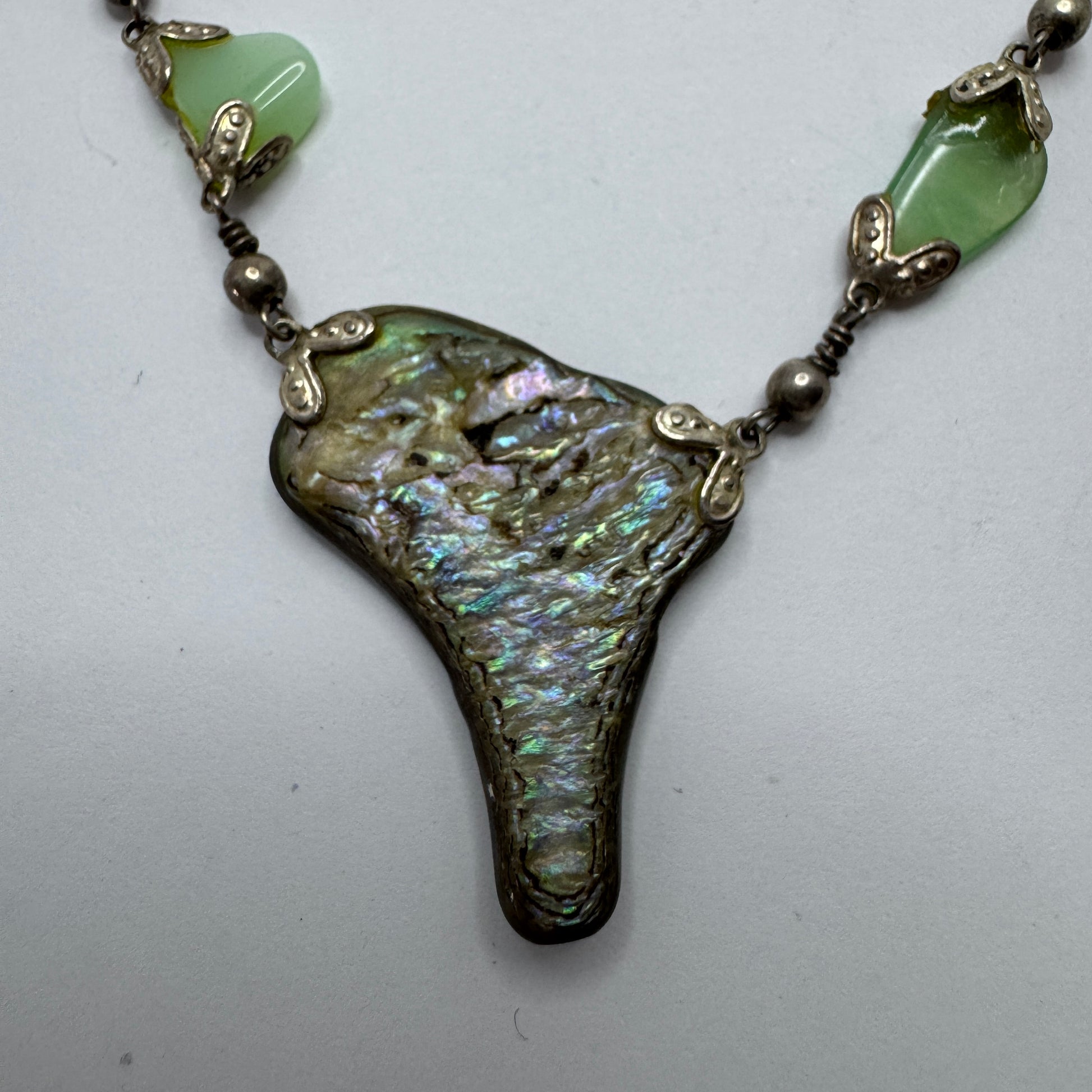 Arezzo, Italy. Vintage Sterling Silver Abalone Agate Necklace.