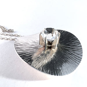 Wonderful and much sought after large vintage sterling silver rock crystal pendant necklace. Fully hallmarked for renowned Atelje Stigbert for Waldemar Jonsson, Stockholm, Sweden year 1971. Also marked "HANDARBETE" = hand wrought