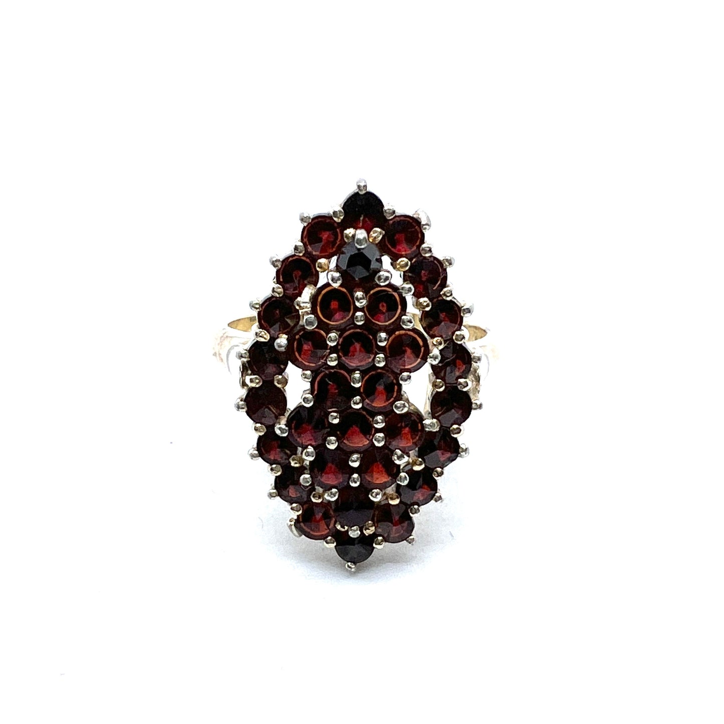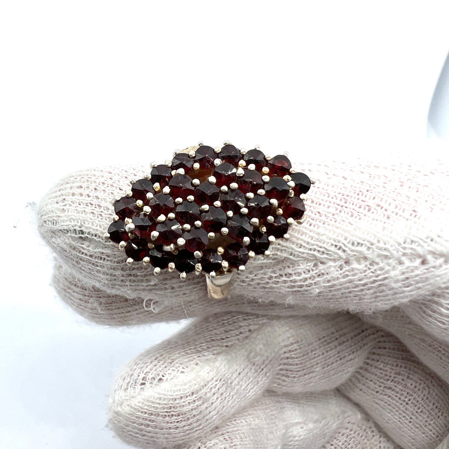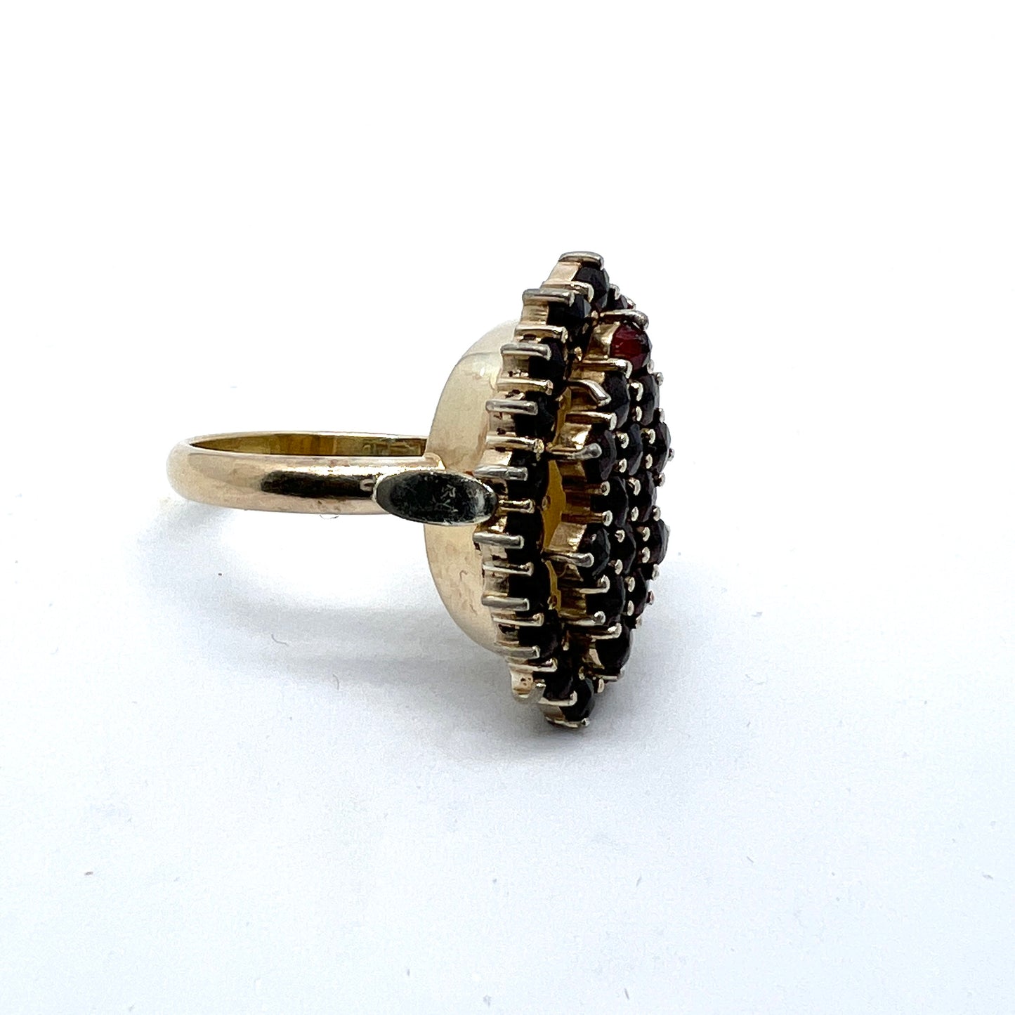 Wonderful vintage 18k gold garnet cluster ring. Hallmarked for Austria c 1930-40s and Swedish import marks. Stones set in gilt silver.