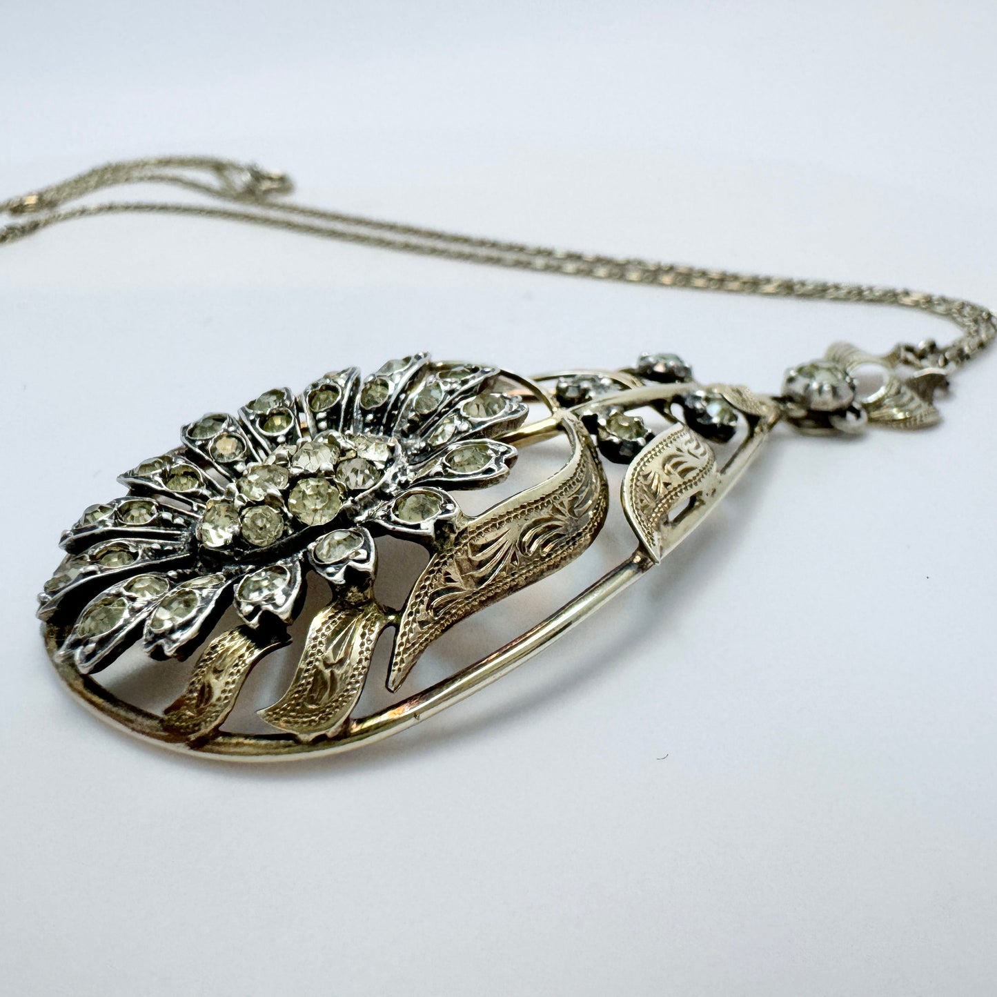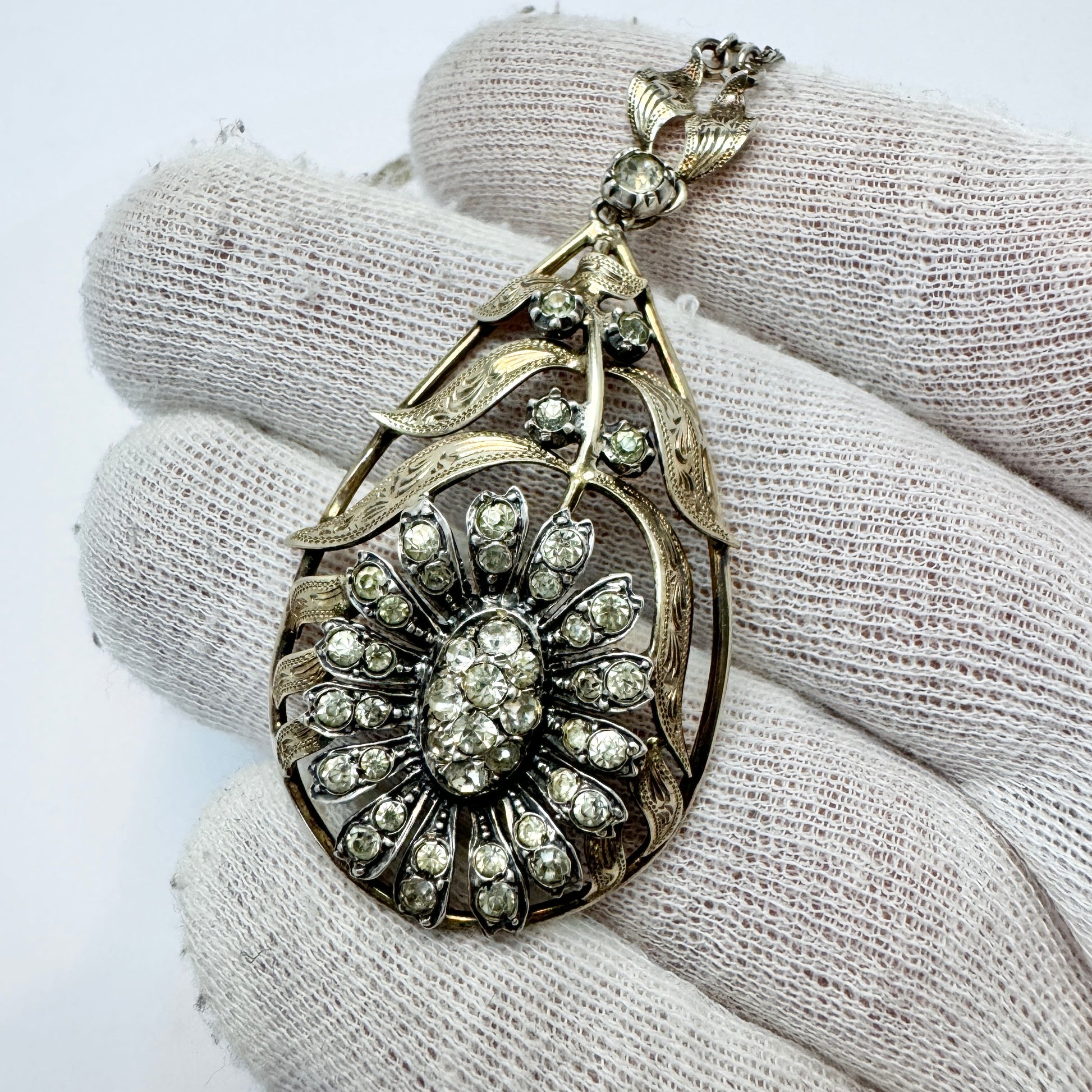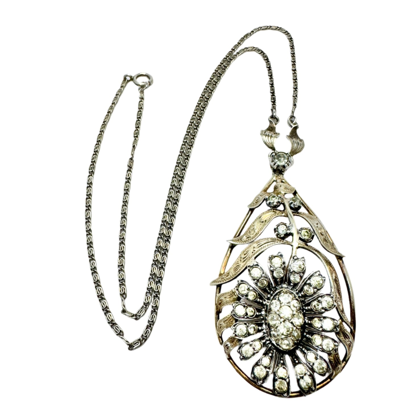 Wonderful vintage/antique sterling 935 silver paste stone pendant necklace. Hallmarked for 935 silver. Germany / Austria early 1900s.