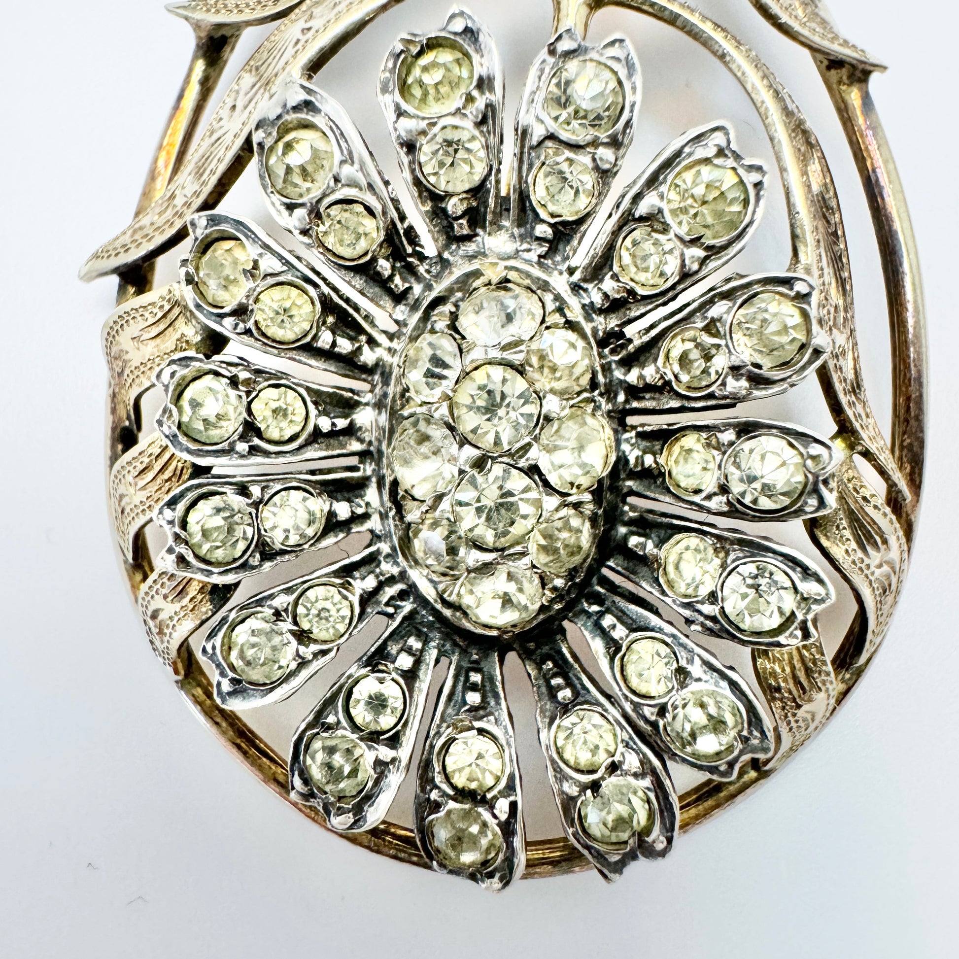 Austria / Germany early 1900s. Sterling 935 Silver Paste Stone Cluster Pendant Necklace.