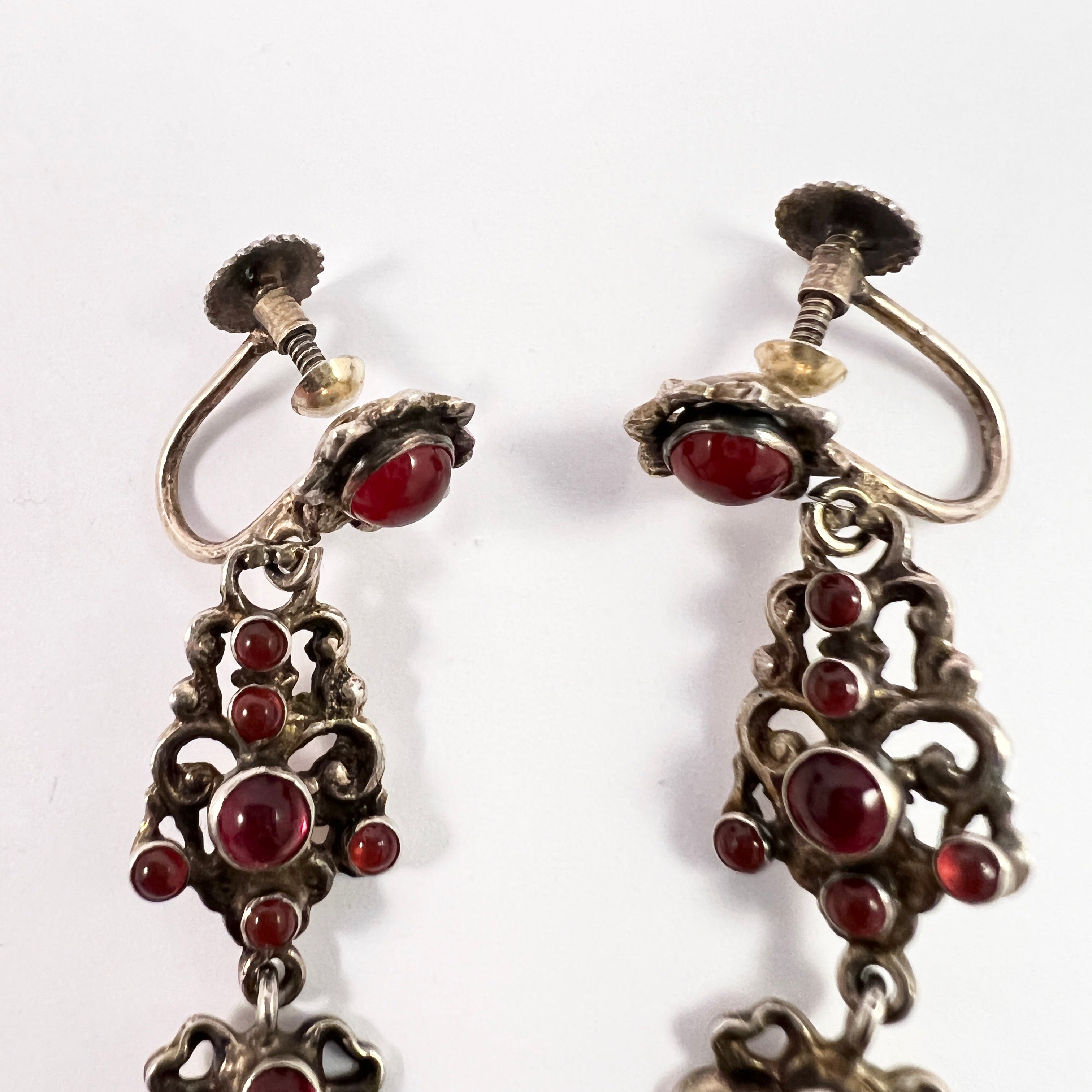 Austro Hungarian Antique c 1900 Solid Silver Vermeil Carnelian Large Earrings.