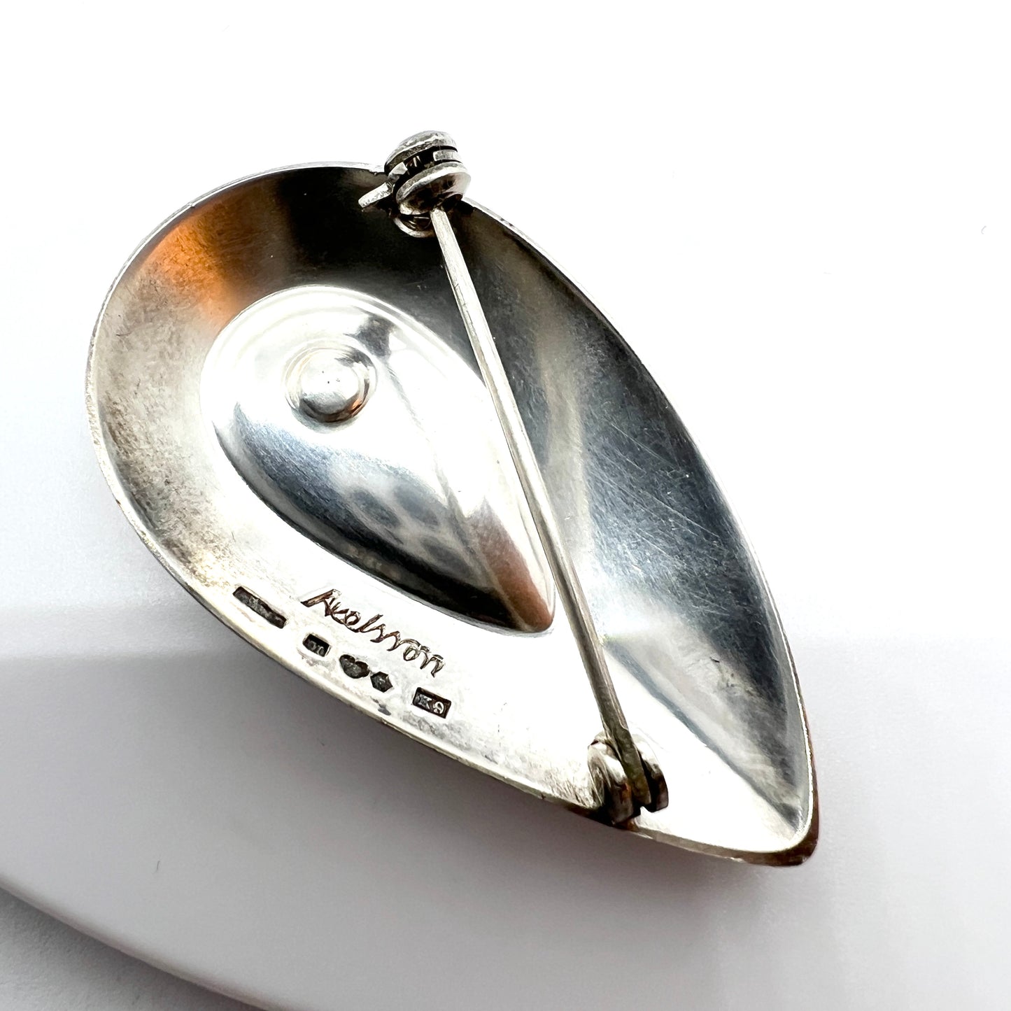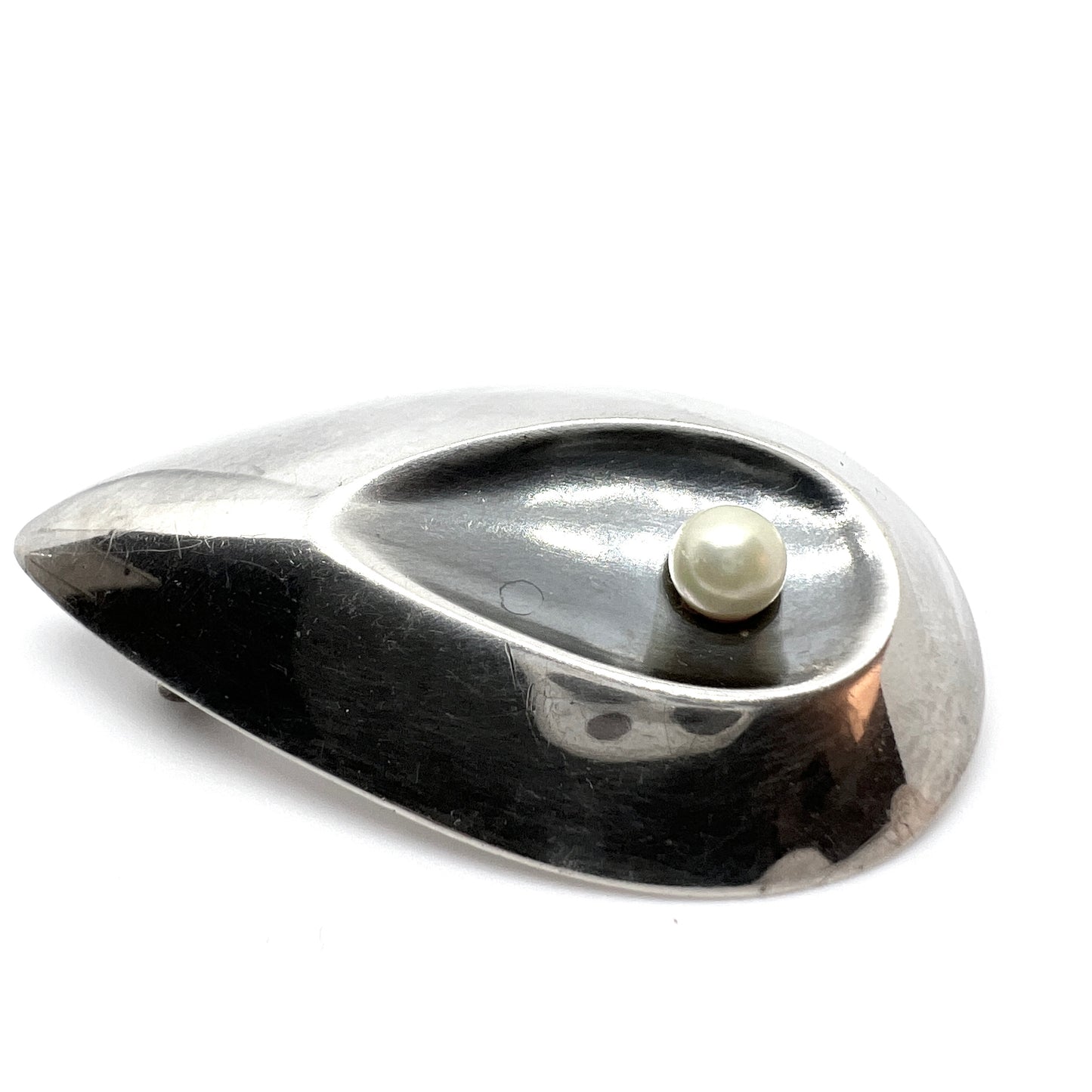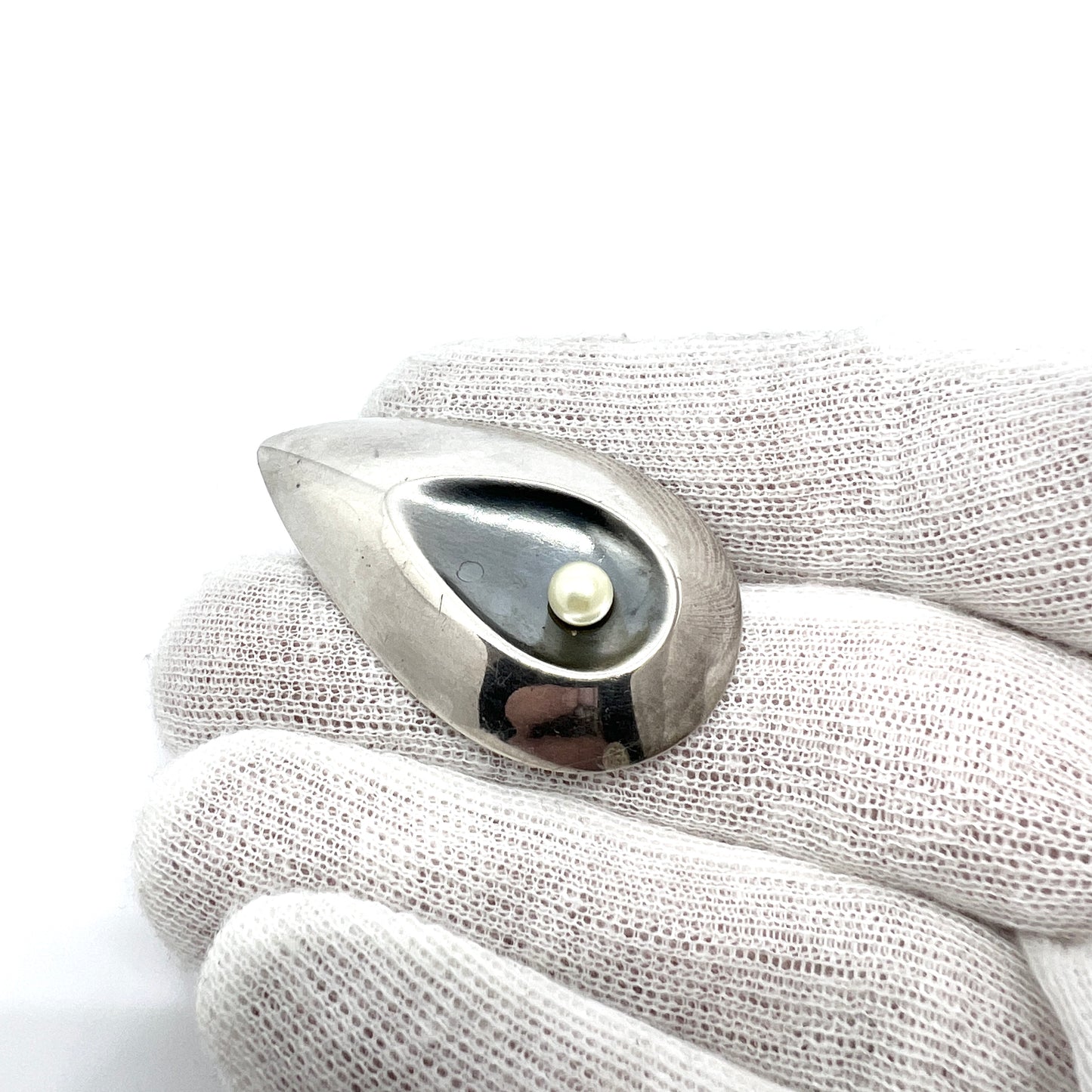 Axelsson for G Dahlgren, Sweden 1960. Vintage Solid Silver Cultured Pearl Brooch. Signed.