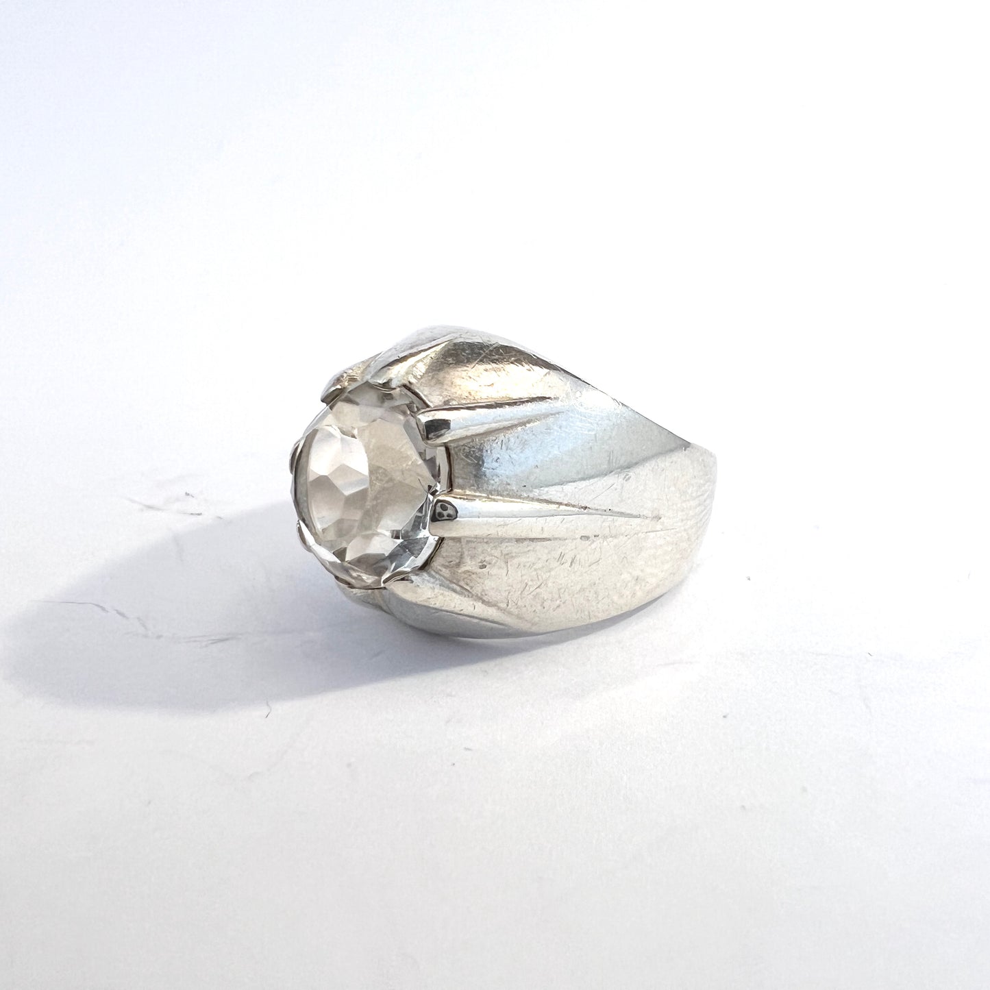 Bengt Hallberg, Sweden 1963. Vintage Modernist Sterling Silver Rock Crystal Ring.