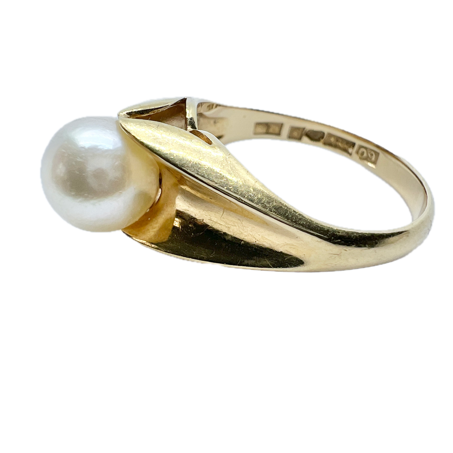 Beautiful vintage 18k gold cultured pearl ring. Fully hallmarked for 18k gold, Bengt Hallberg, Sweden year 1964.