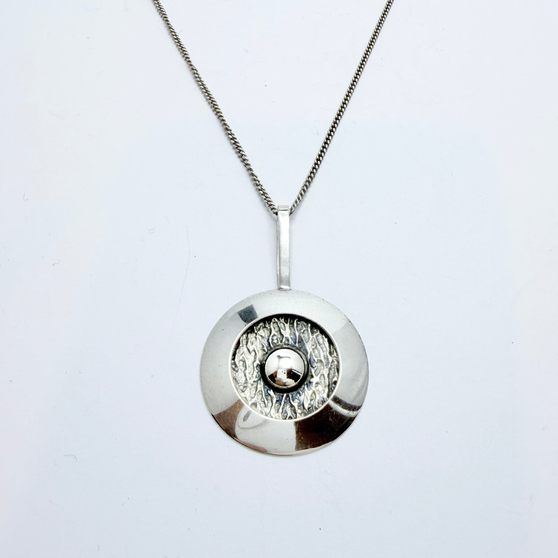 Bengt Hallberg, Sweden 1971 Vintage Modernist Sterling Silver Pendant Necklace