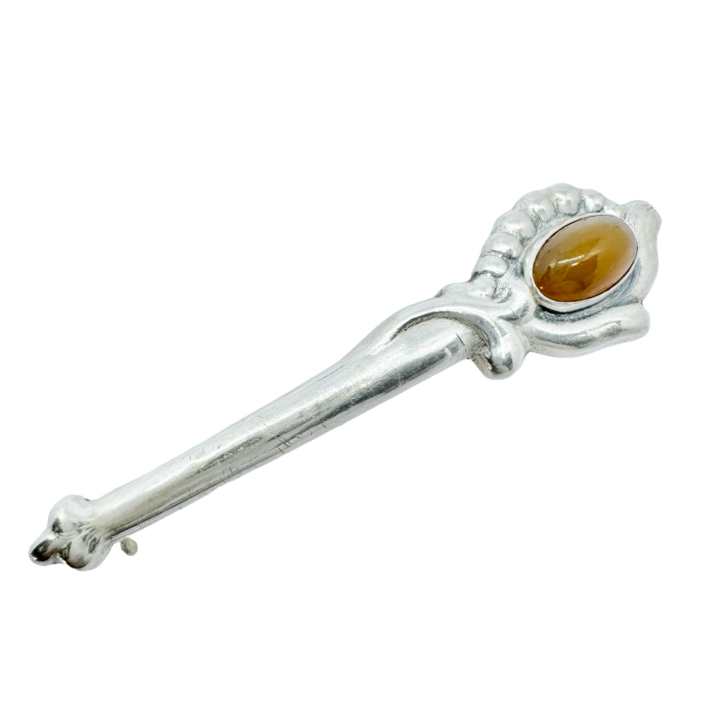 Bernhard Hertz, Denmark c 1910s. Antique Art Nouveau Solid Silver Amber Brooch Pin.