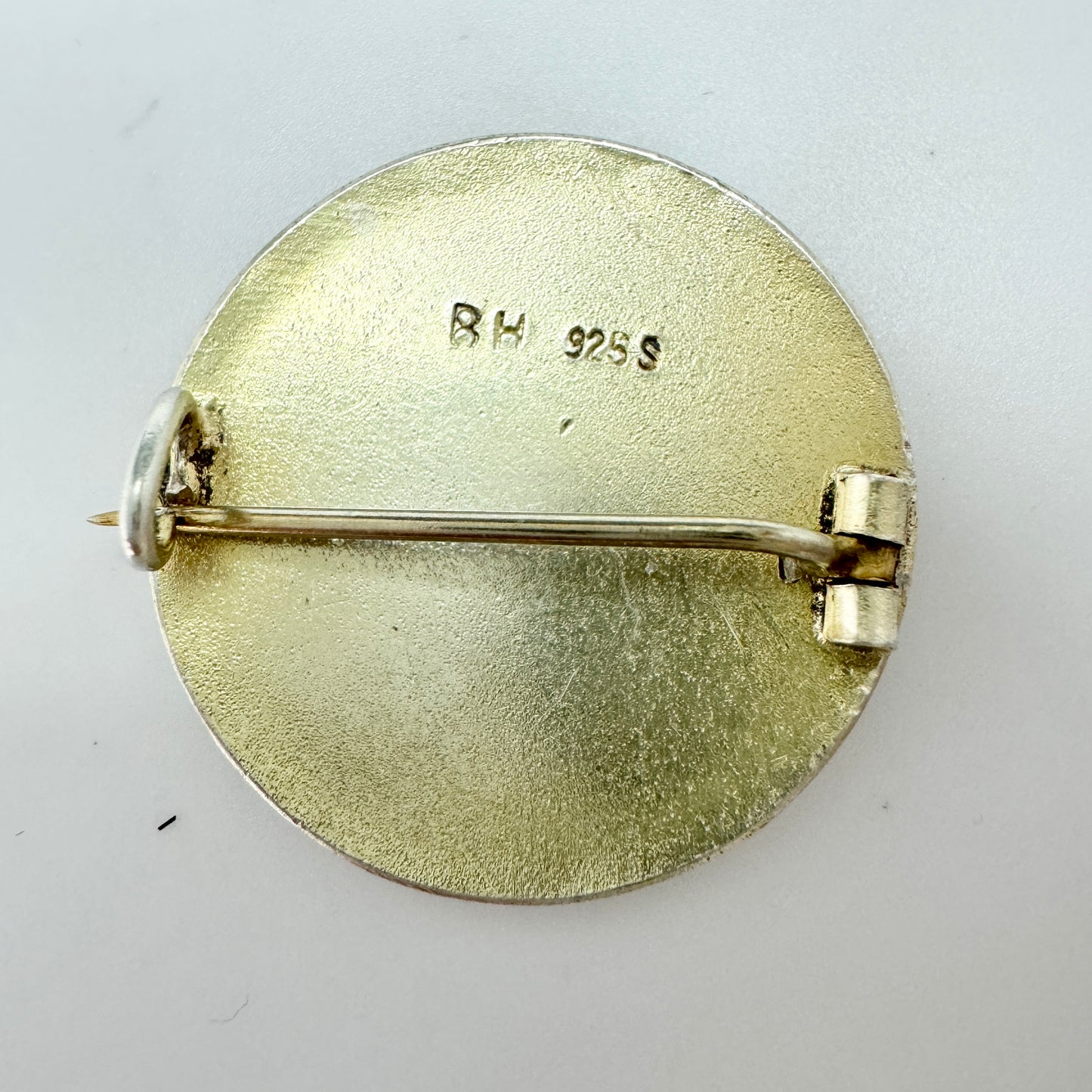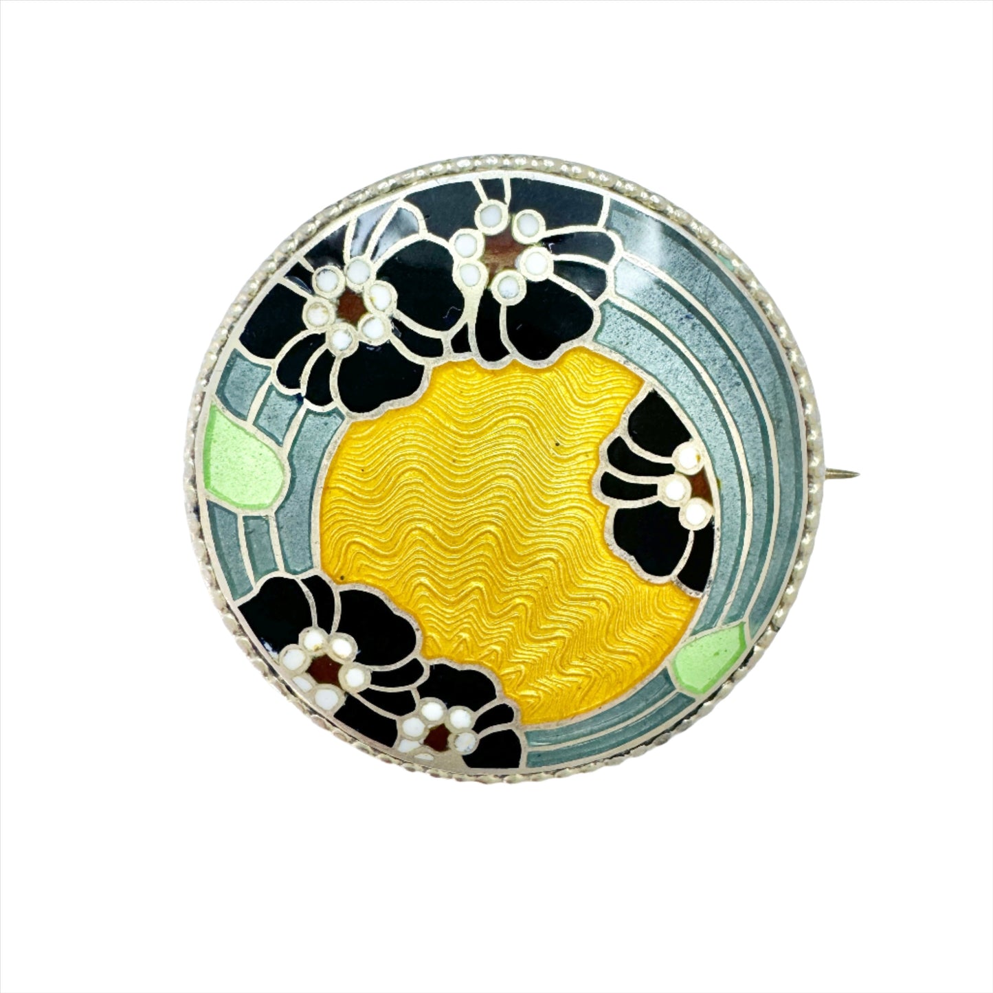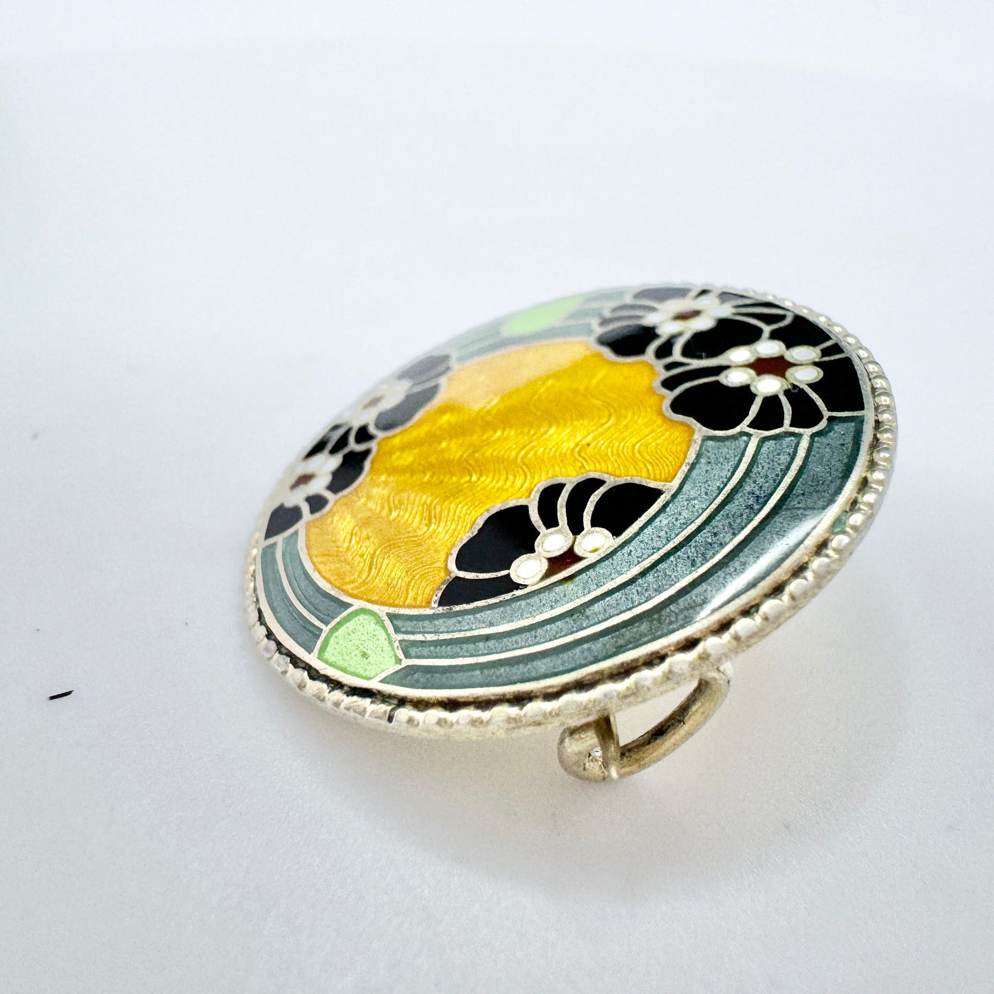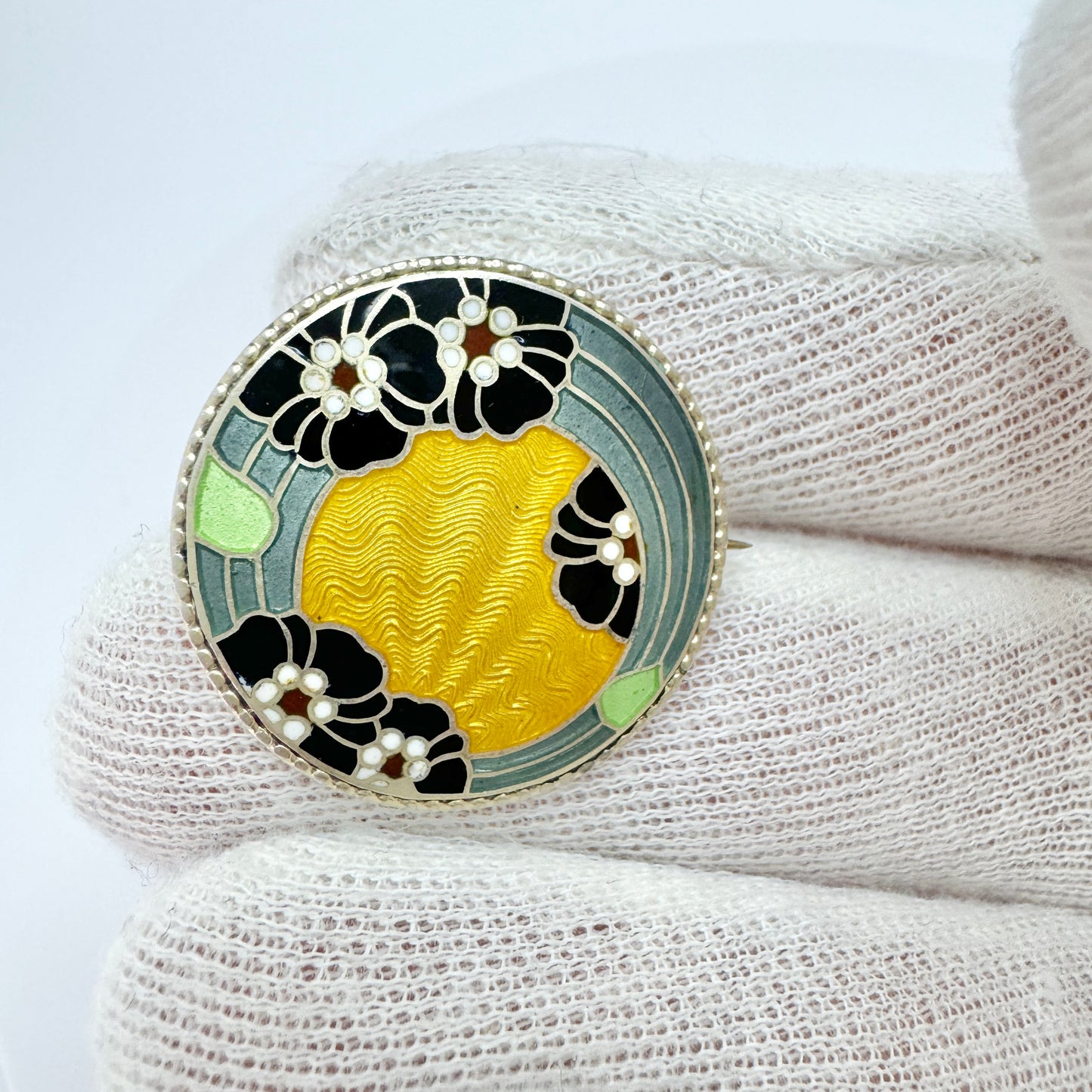 Bernhard Hertz, Denmark c 1910s. Antique Jugendstil Sterling Silver Enamel Brooch.