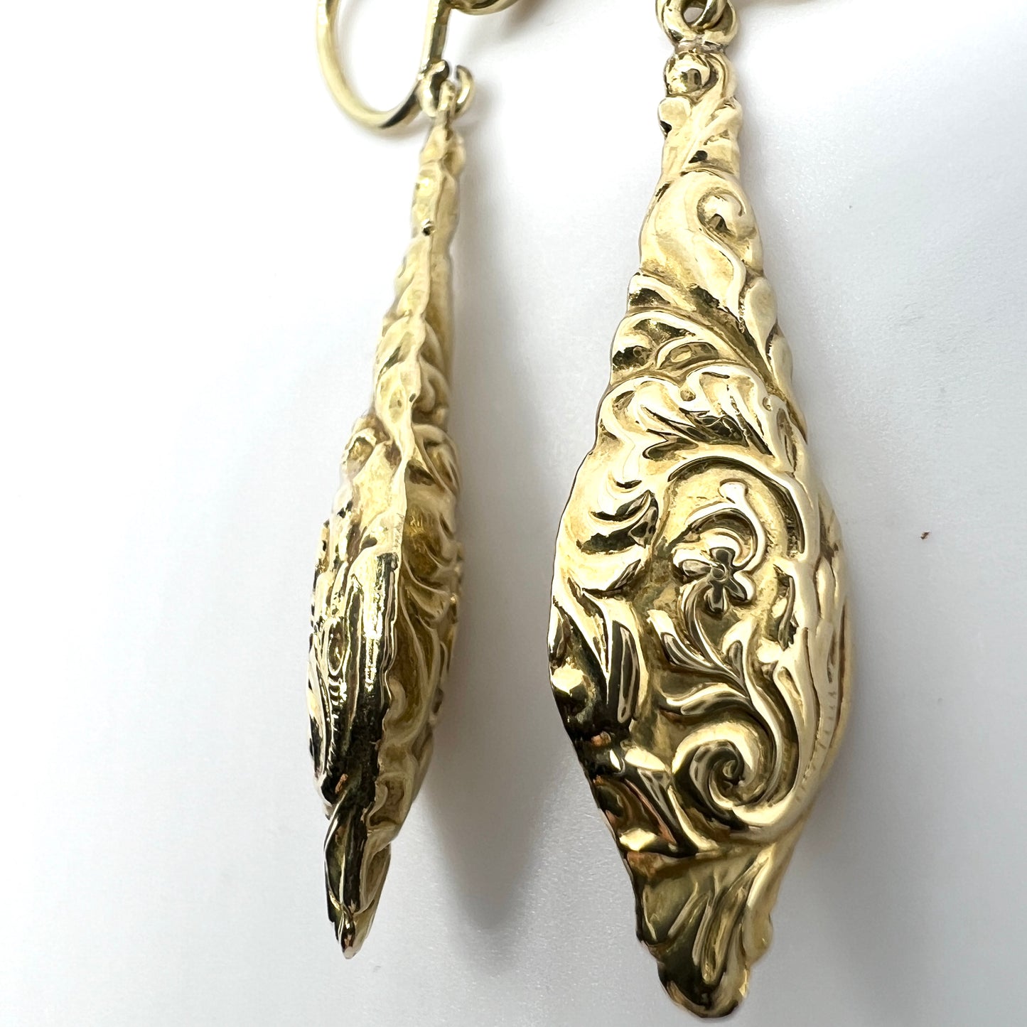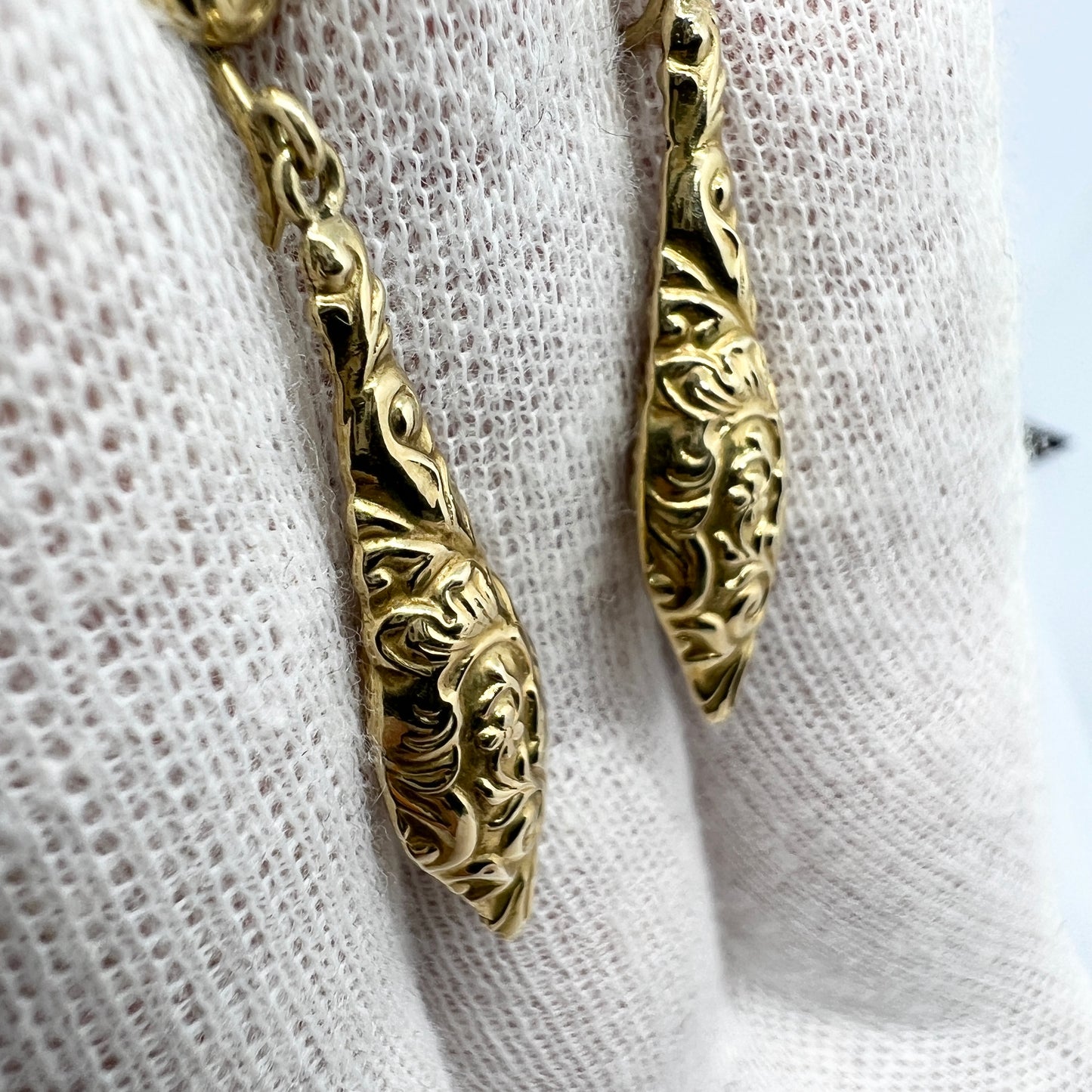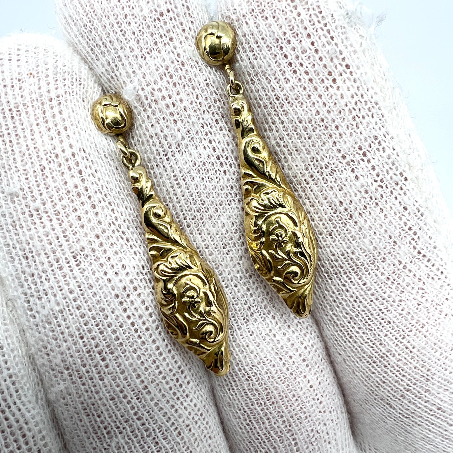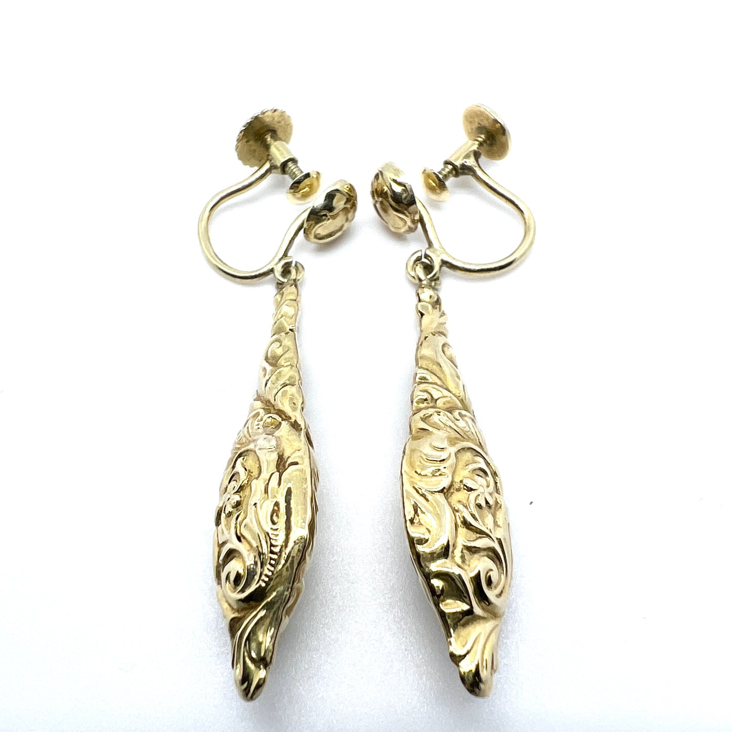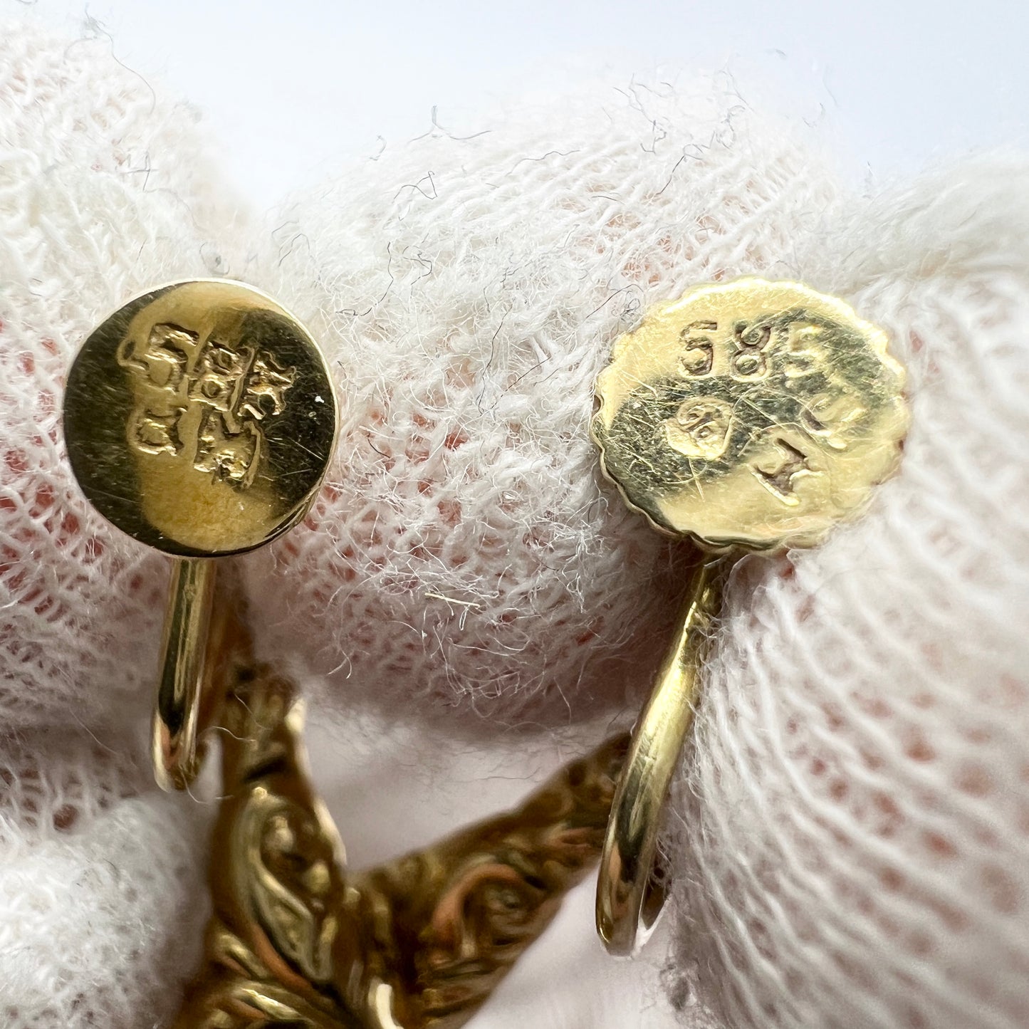 Bernhard Hertz, Denmark c 1920. Antique Art Nouveau 14k Gold Earrings.