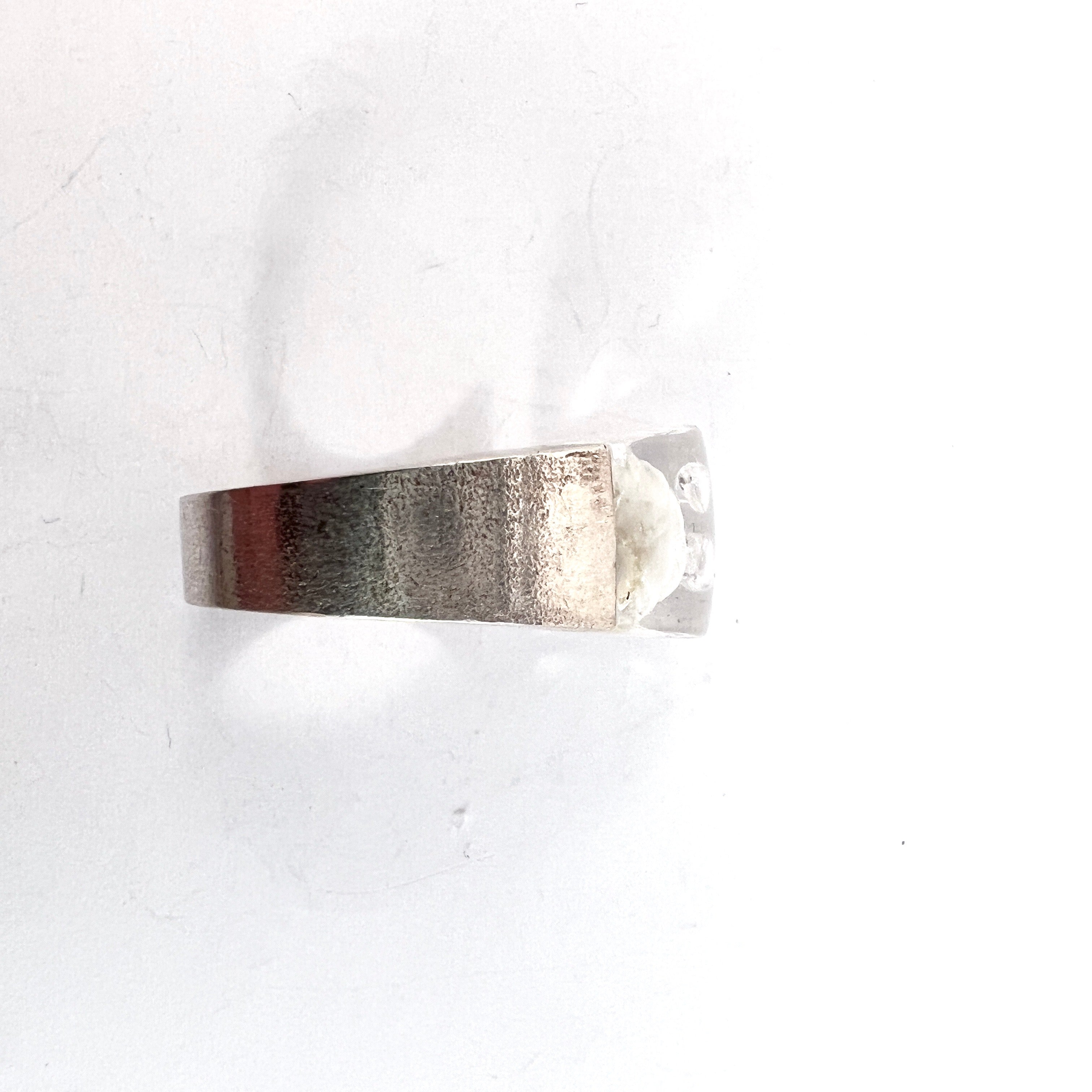 Wonderful and much sought after vintage sterling silver acrylic designer ring. Fully hallmarked for Bjorn Weckstrom for Lapponia, Finland year 1972.