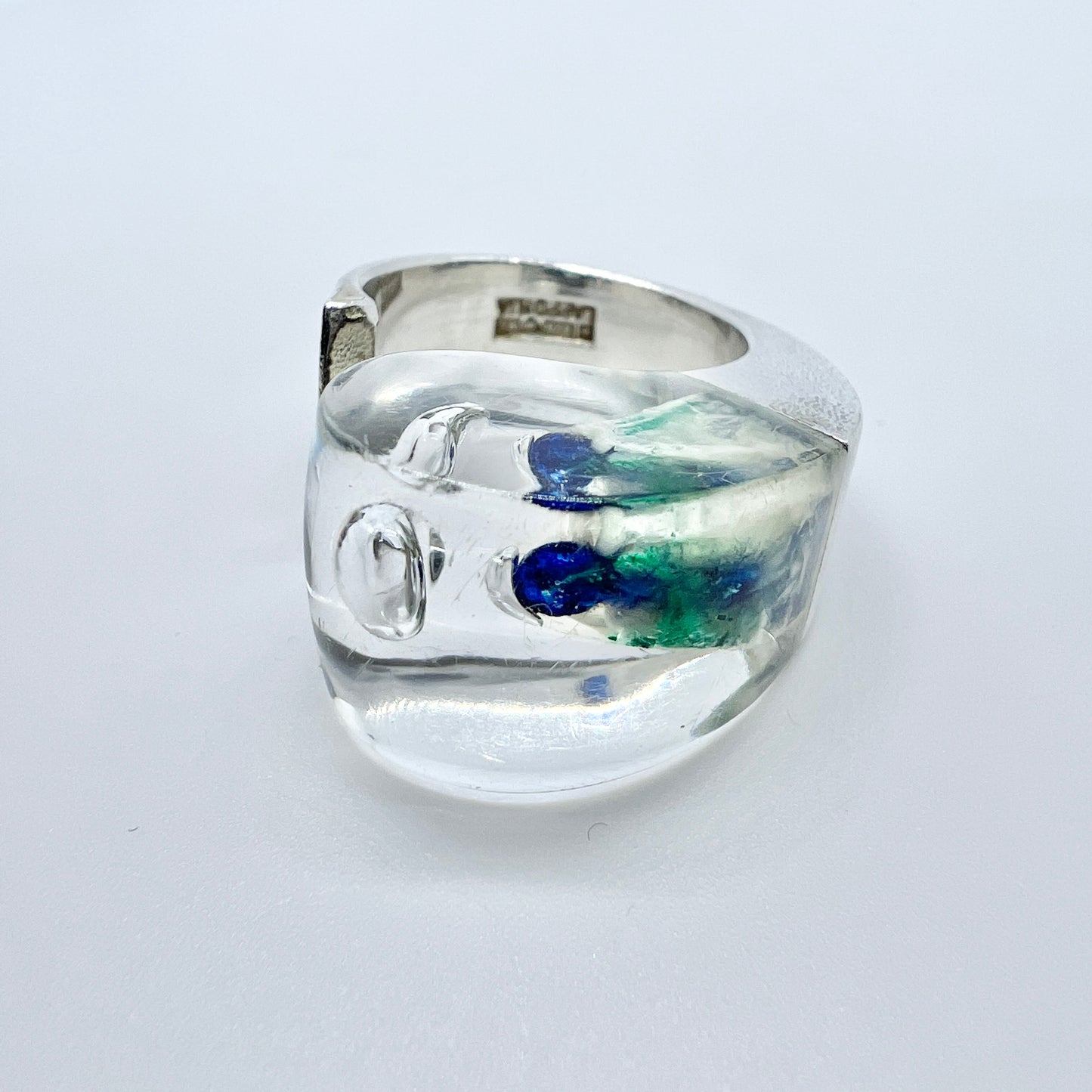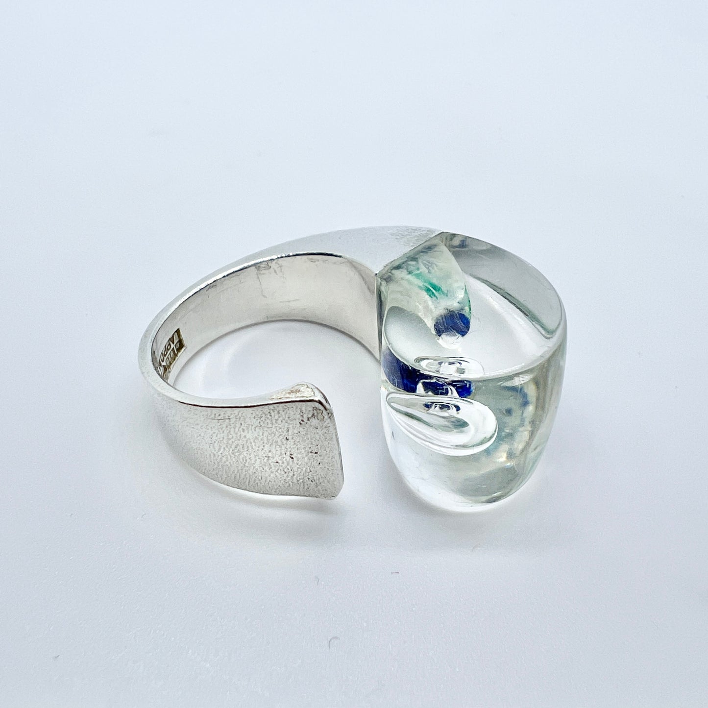 Bjorn Weckstrom for Lapponia, Finland 1974. Vintage Sterling Silver Acrylic Ring. Design Microns