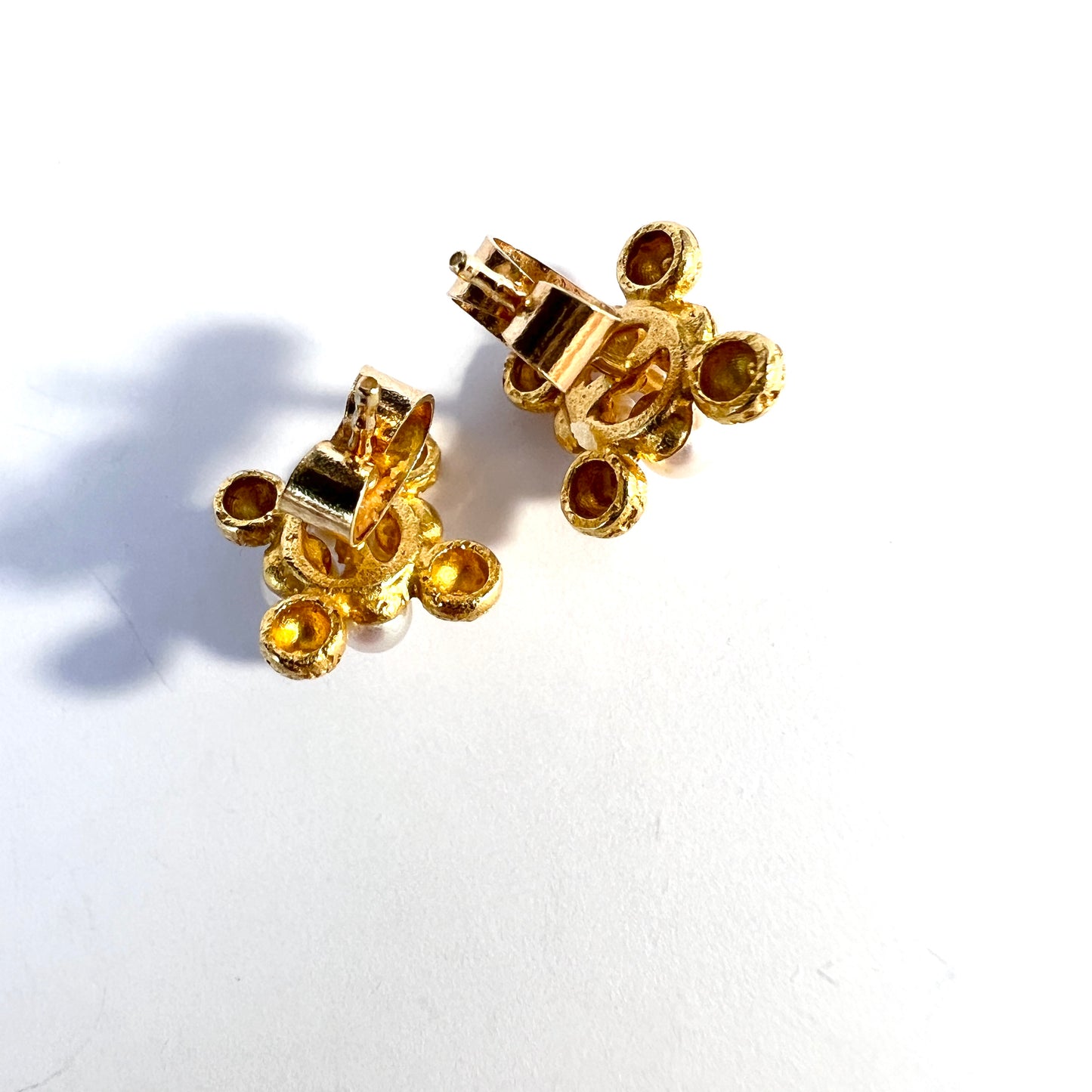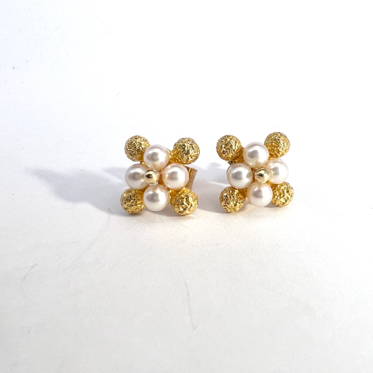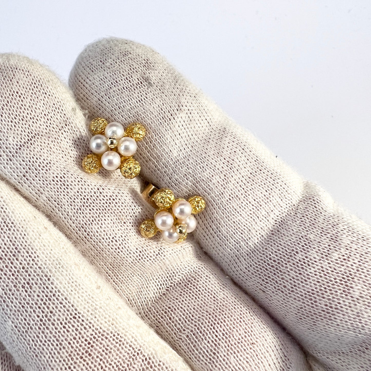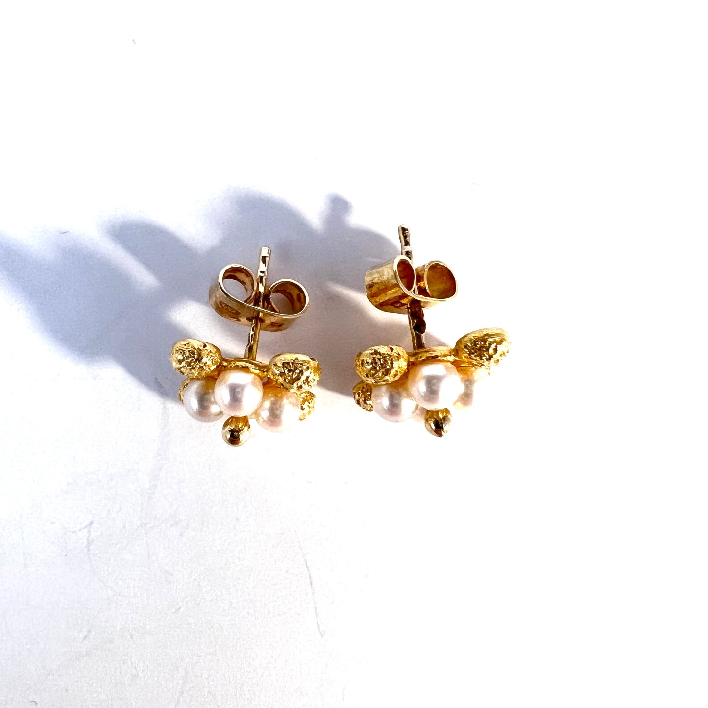 Bjorn Weckstrom for Lapponia, Finland. Vintage 18k Gold Pearl Earrings. Design: Wild Flower.