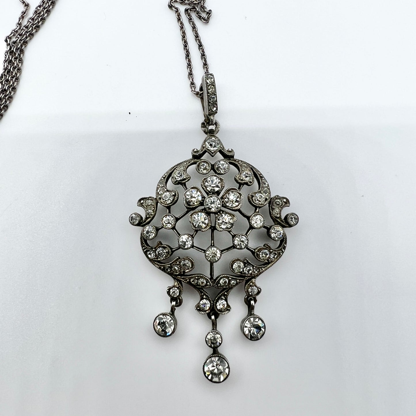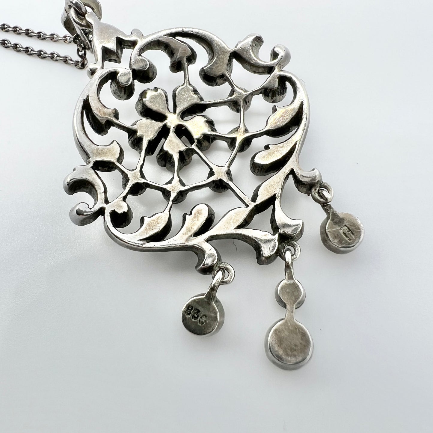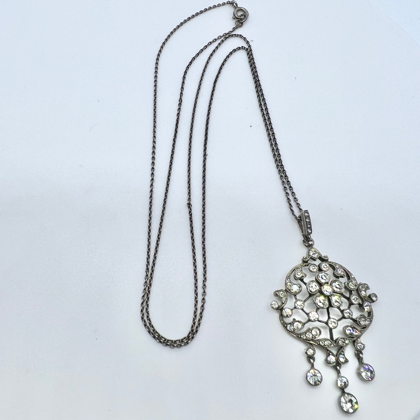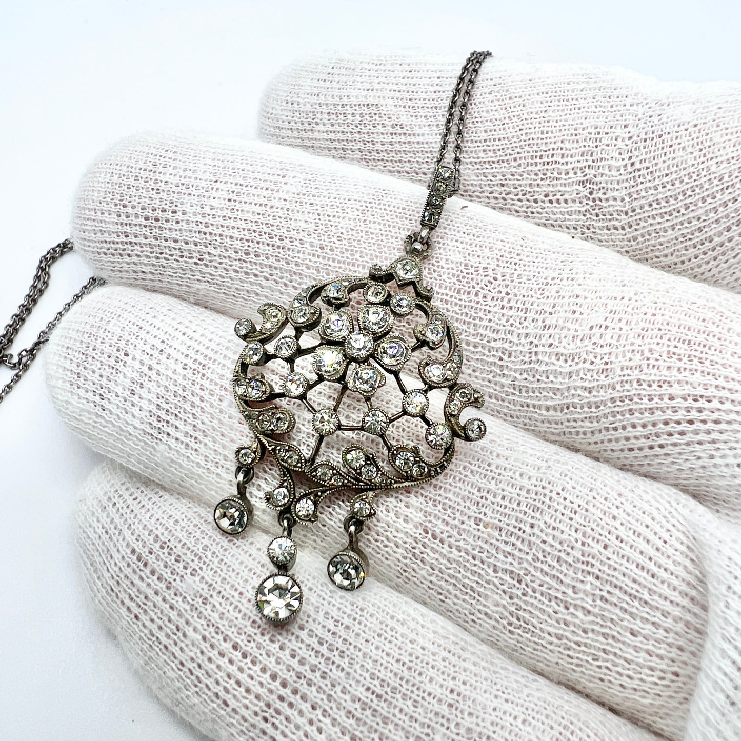 Wonderful and much sought after vintage solid silver paste stone pendant necklace. Hallmarked for 830 silver, Bremer Silberwarenfabrik, Germany c 1930s.