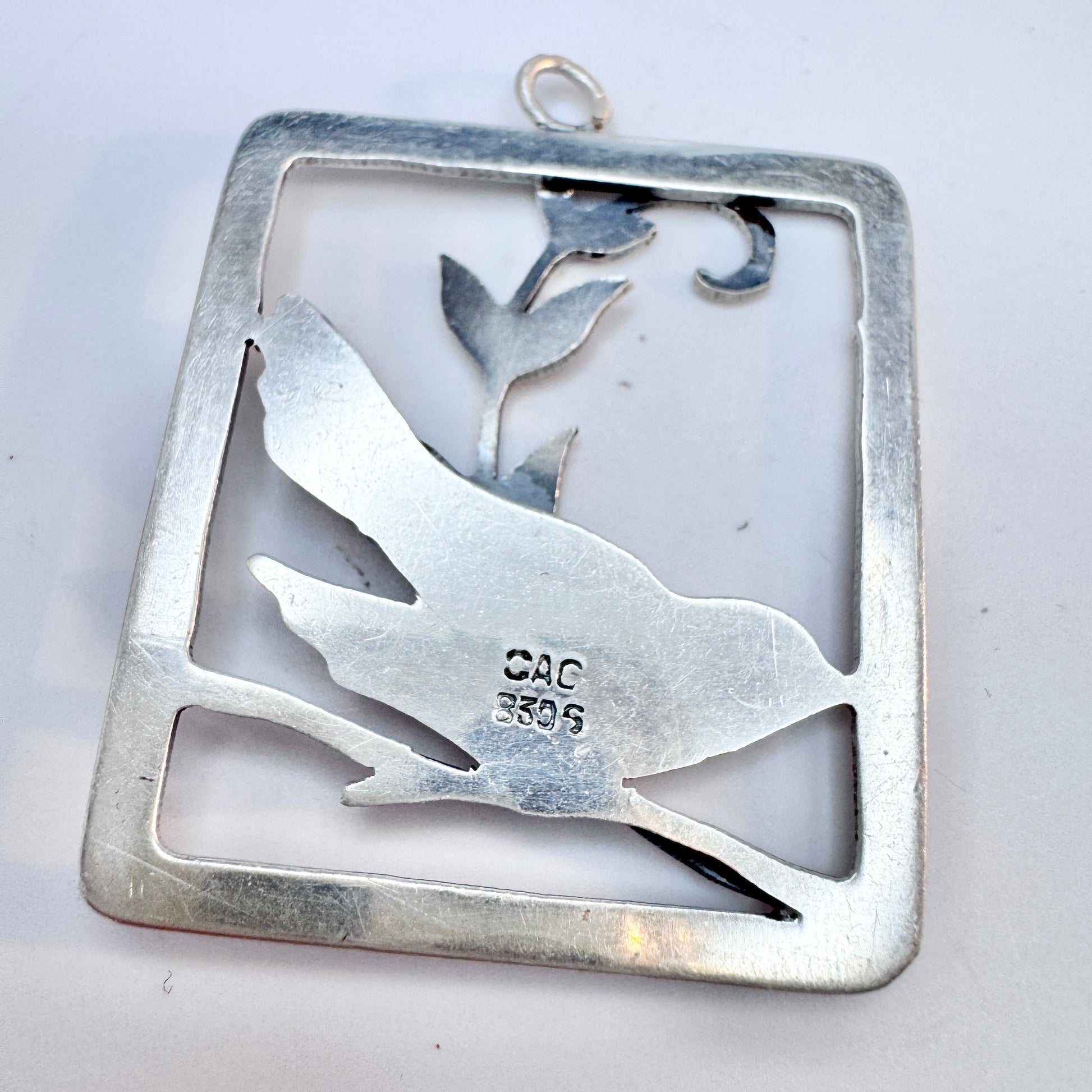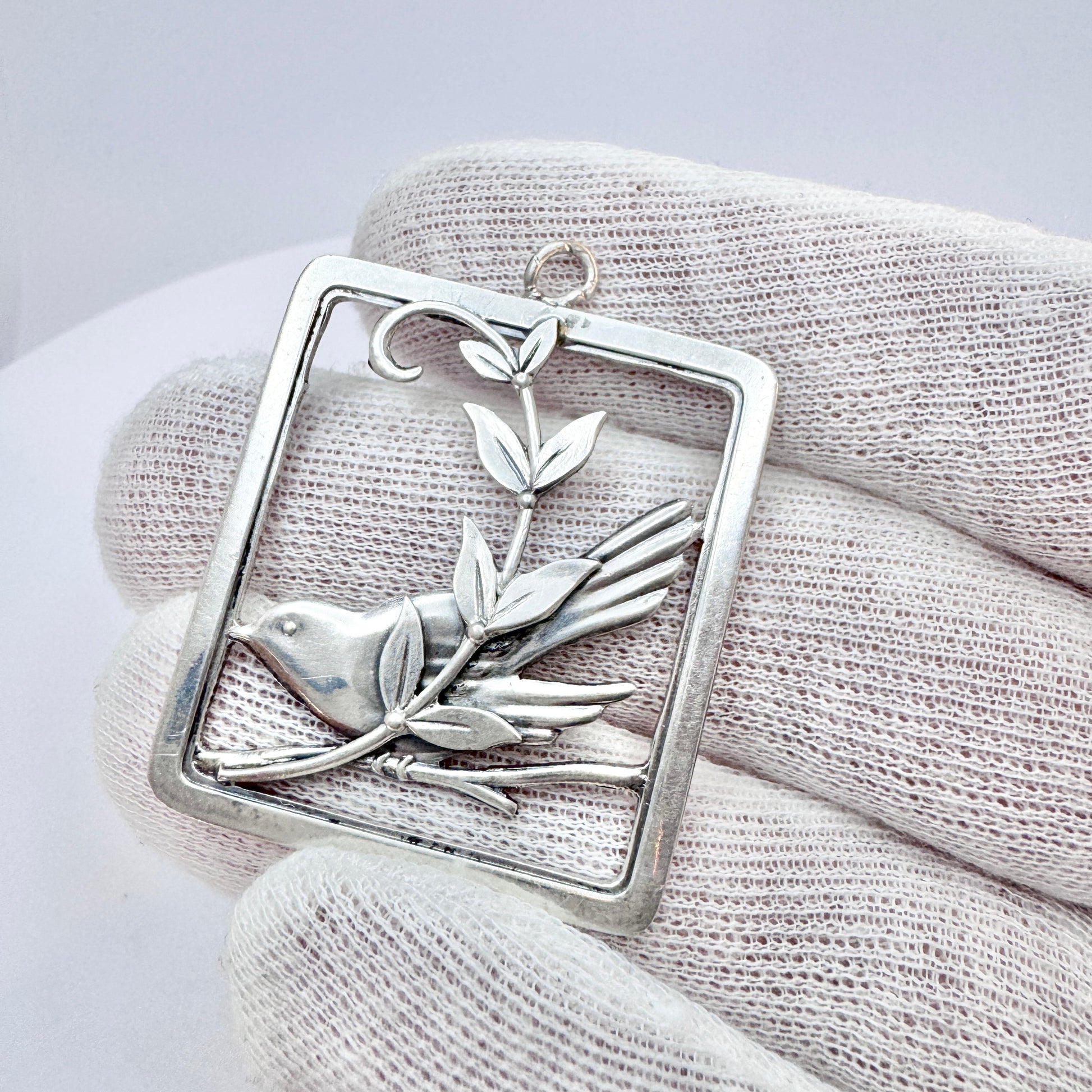 CA Christensen, Denmark 1940s. WW2-era Peace Dove Pendant in Solid Silver.