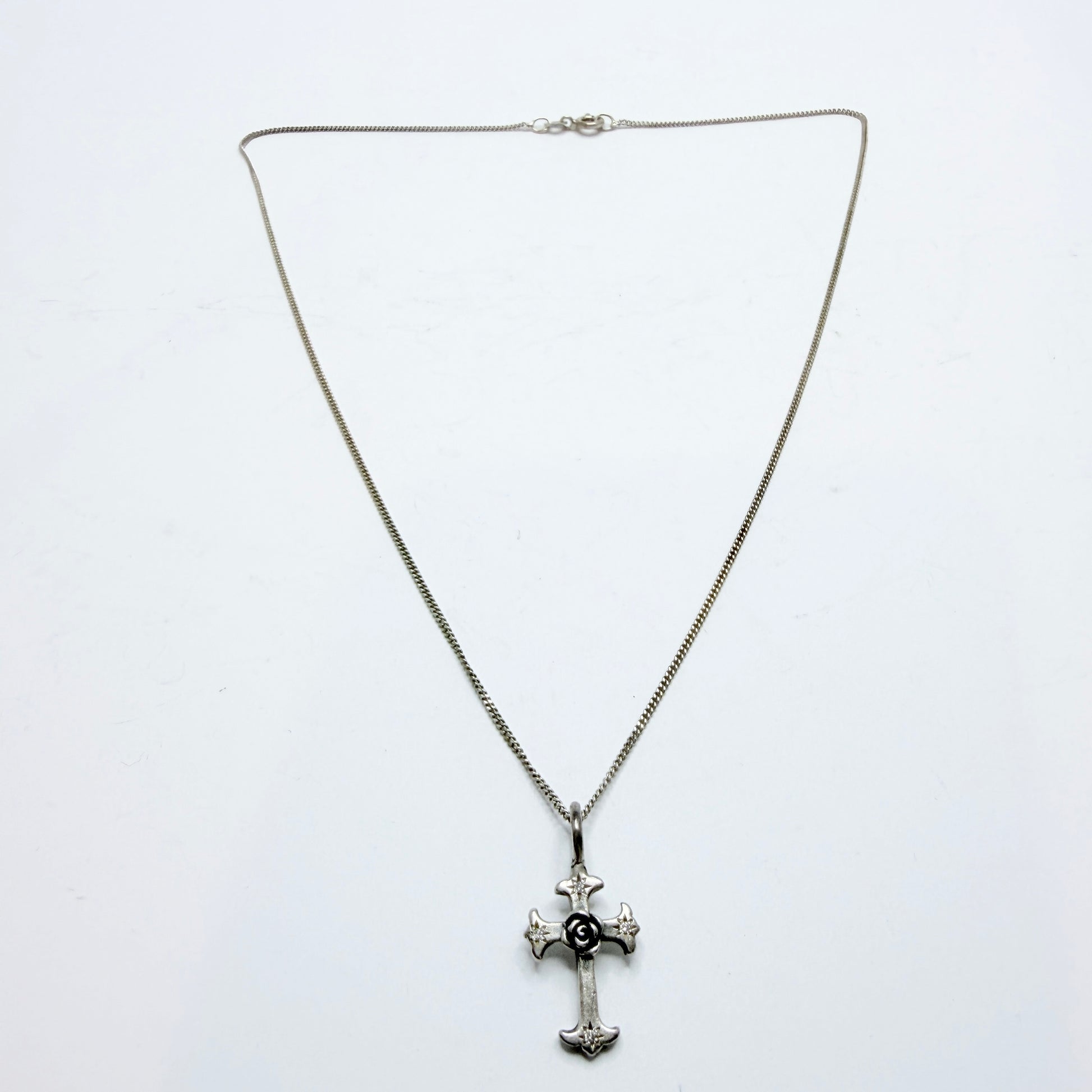 Catherine Michiels. Sterling Silver Diamond Cross Pendant Necklace.