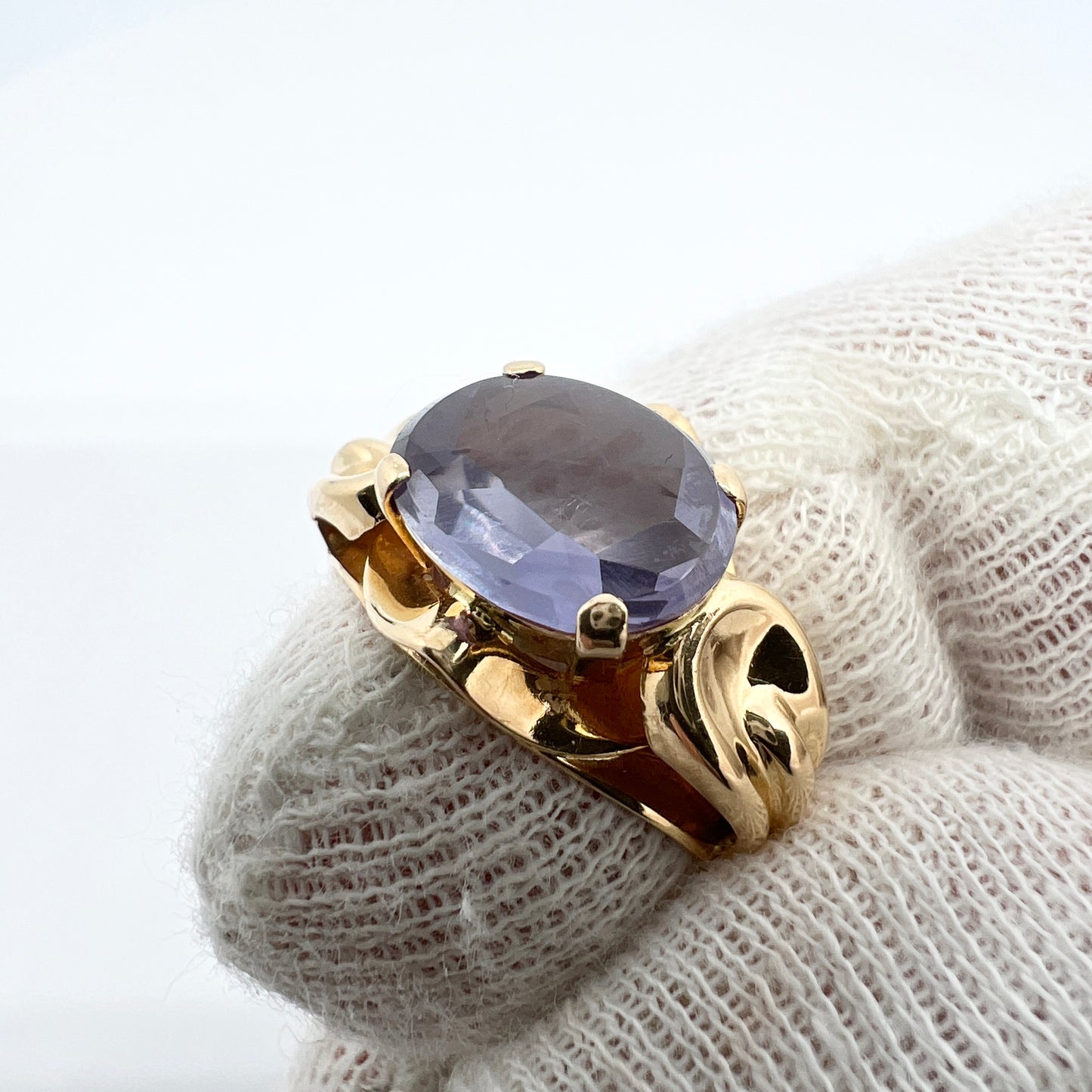 Ceson, Sweden year 1960. Vintage 18k Gold Synthetic Sapphire Ring.