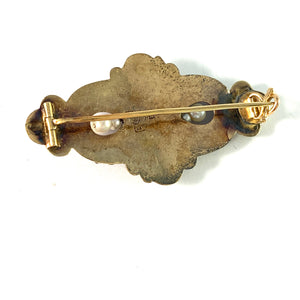 Christian Hammer, Sweden 1848 early Victorian 18k Gold Garnet Turquoise Pearl Brooch