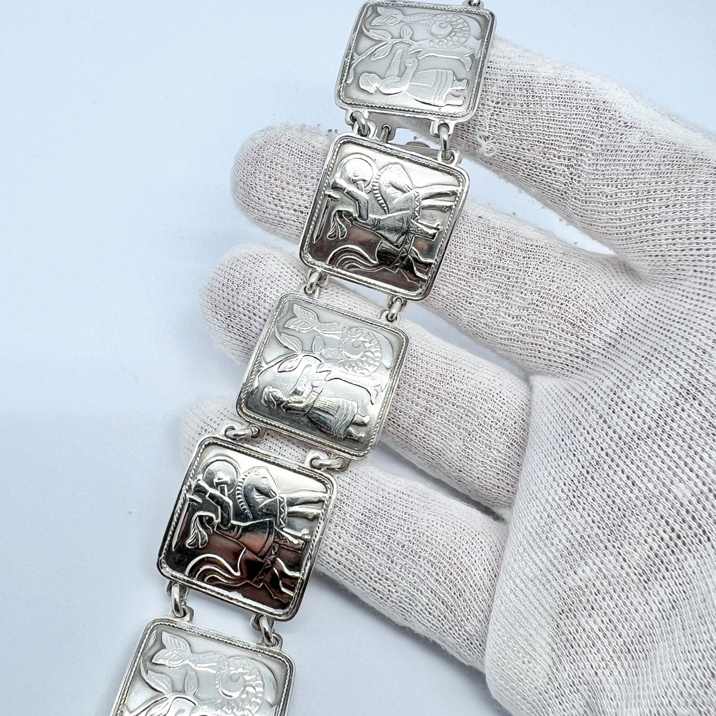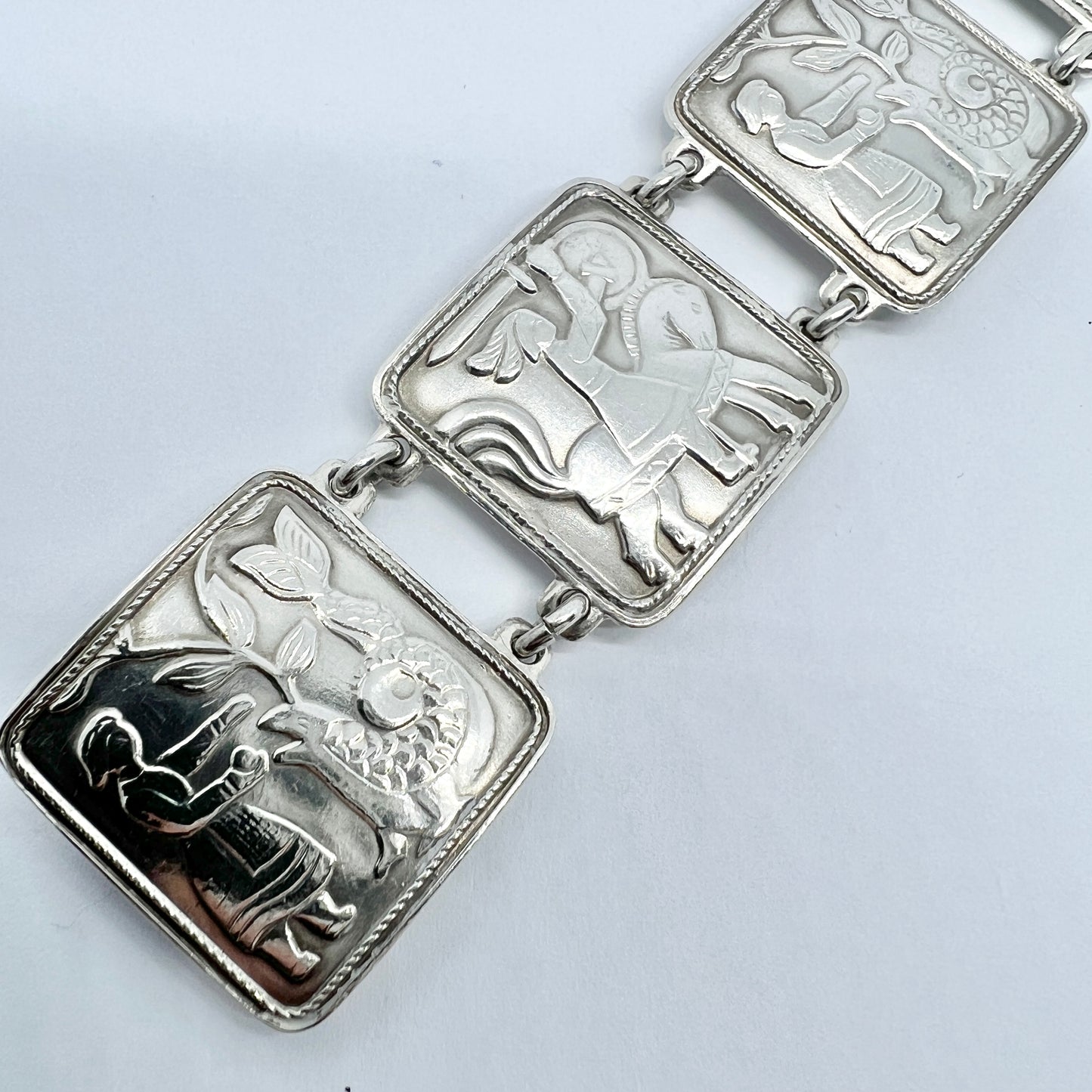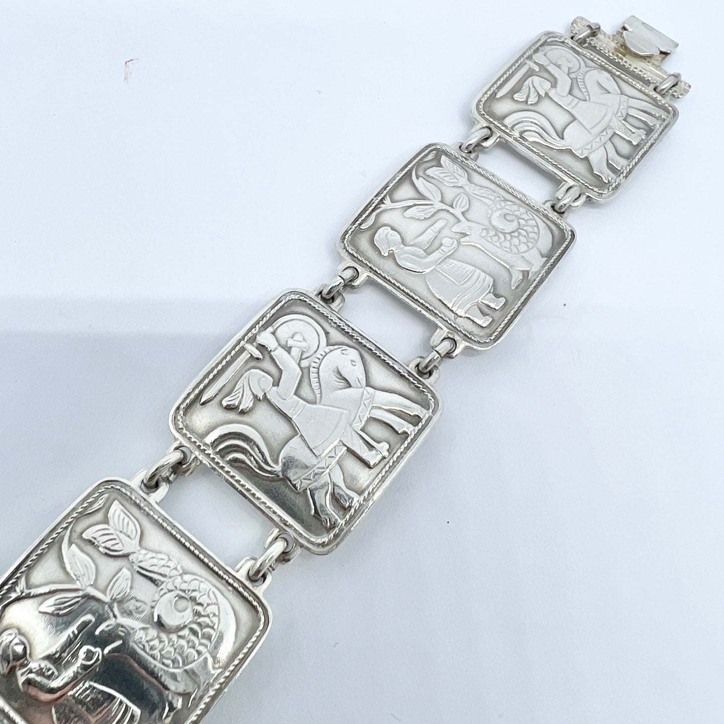 David-Andersen Norway c 1940-50s Solid Silver Panel Bracelet. Design: Eventyr / Fairy-tale