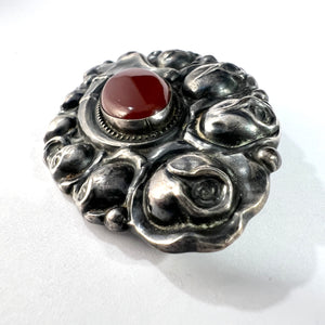 Denmark c 1910s. Art Nouveau Large 830 Silver Carnelian Brooch. Makers Mark.