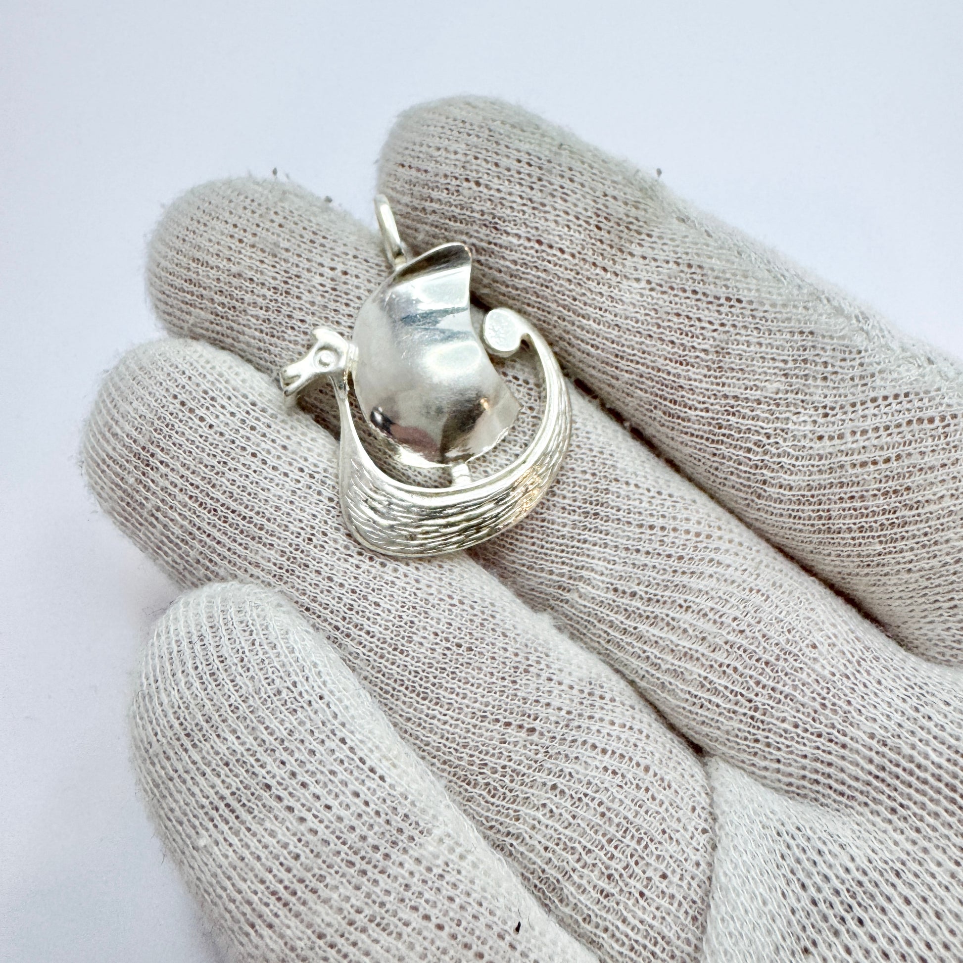 Denmark / Norway. Vintage Solid Silver Viking Ship Pendant.