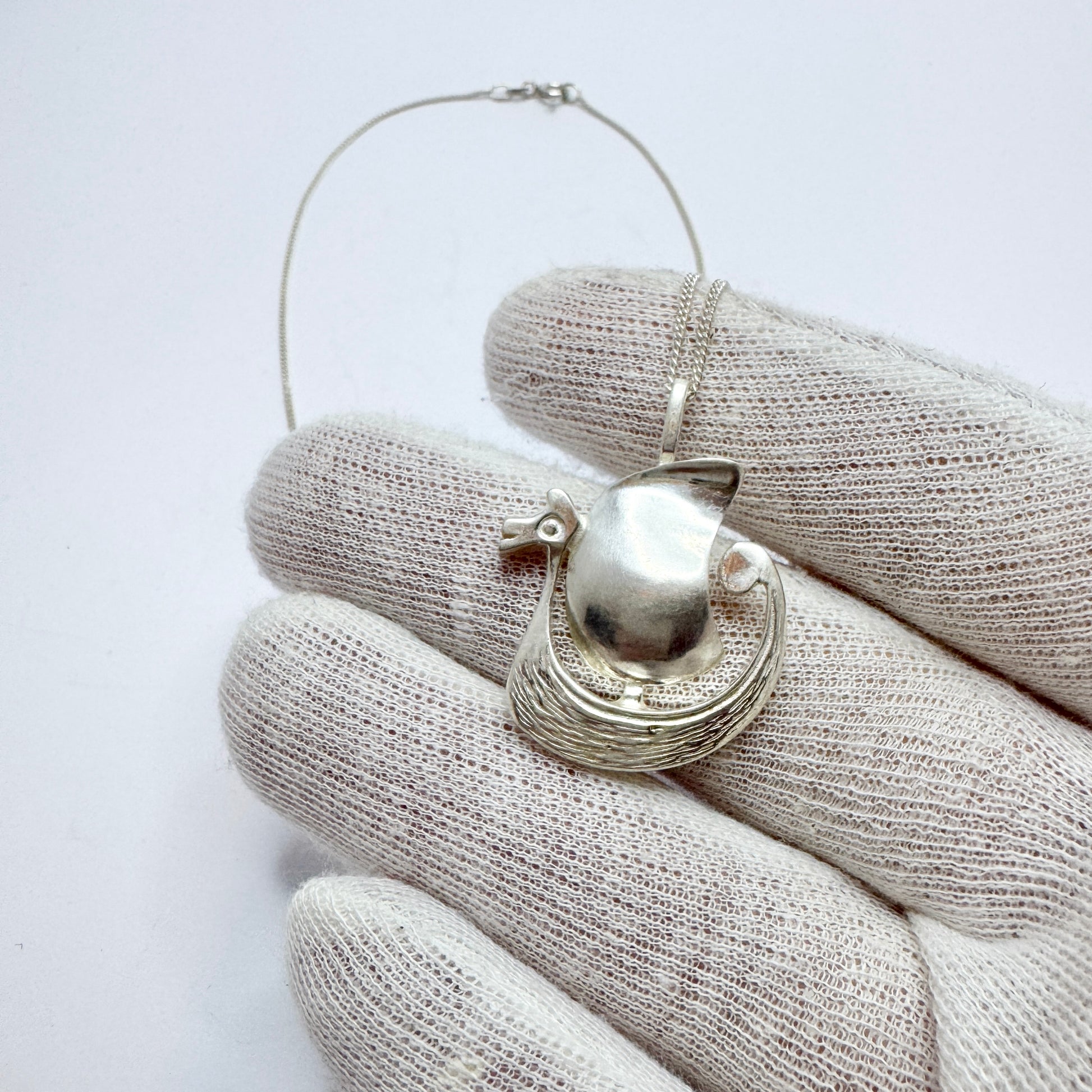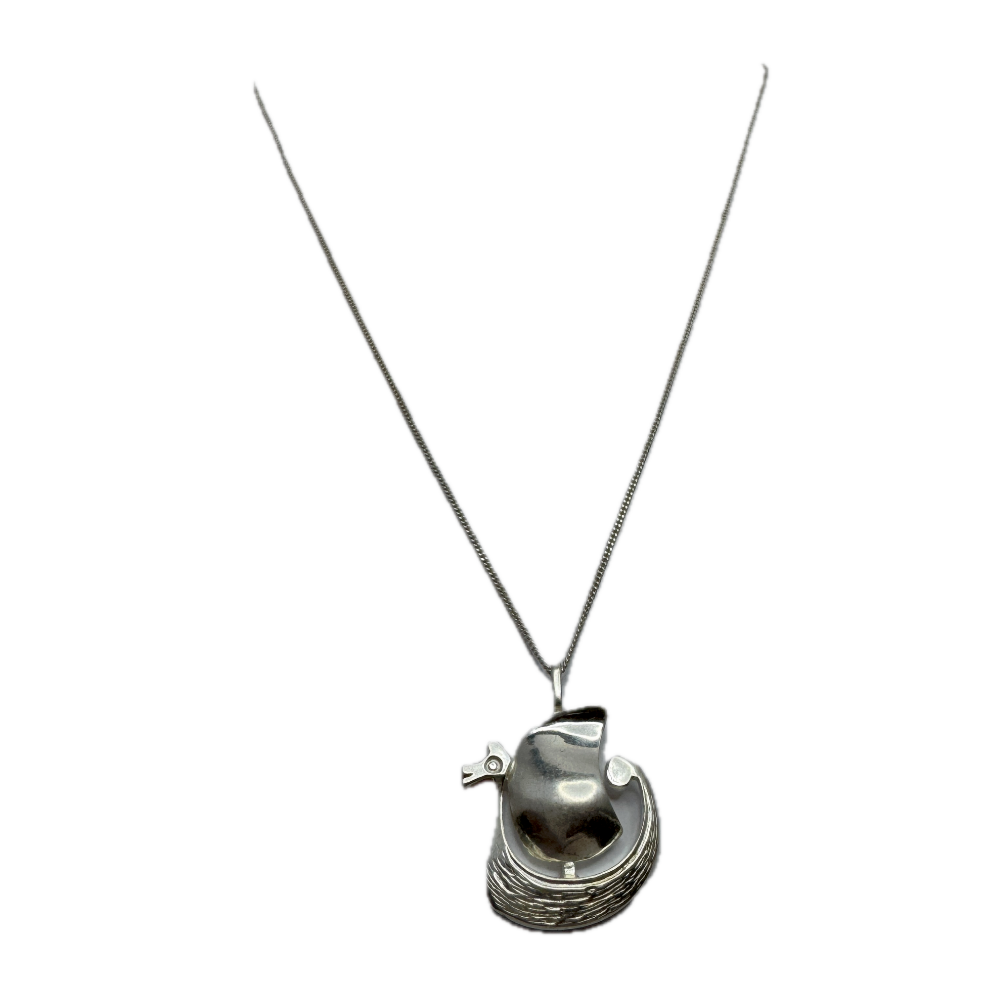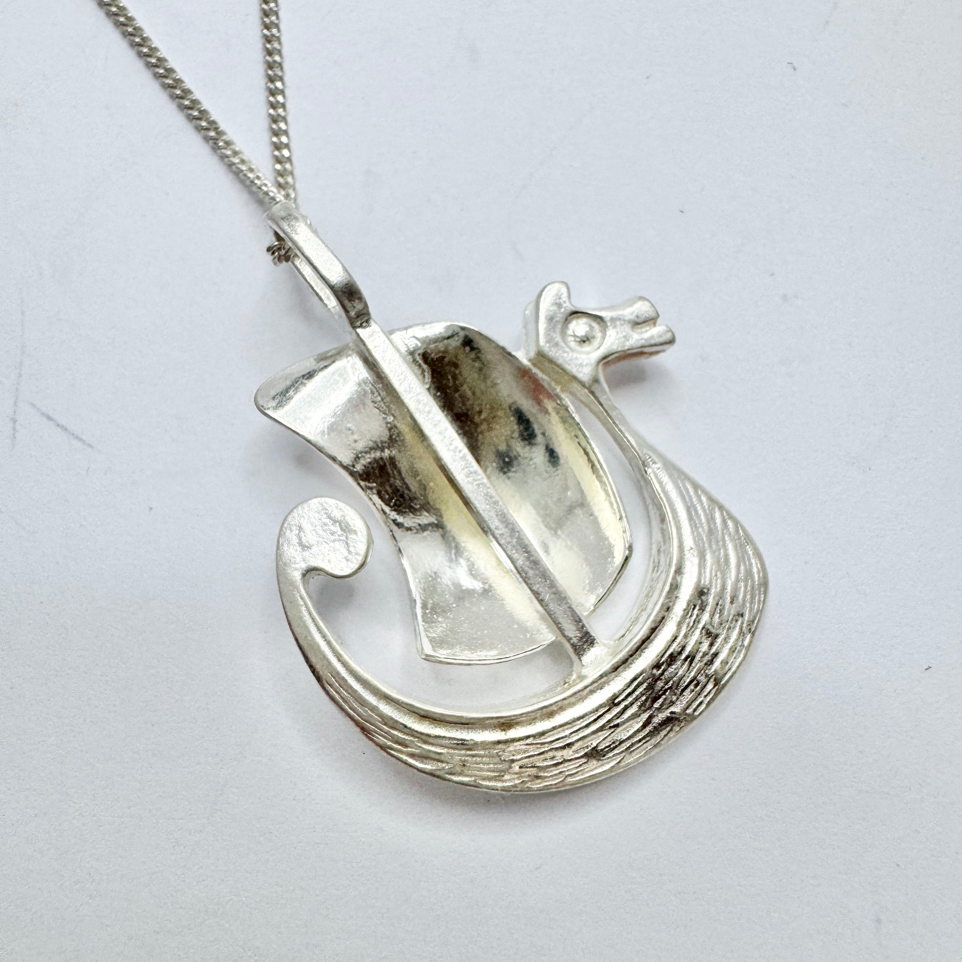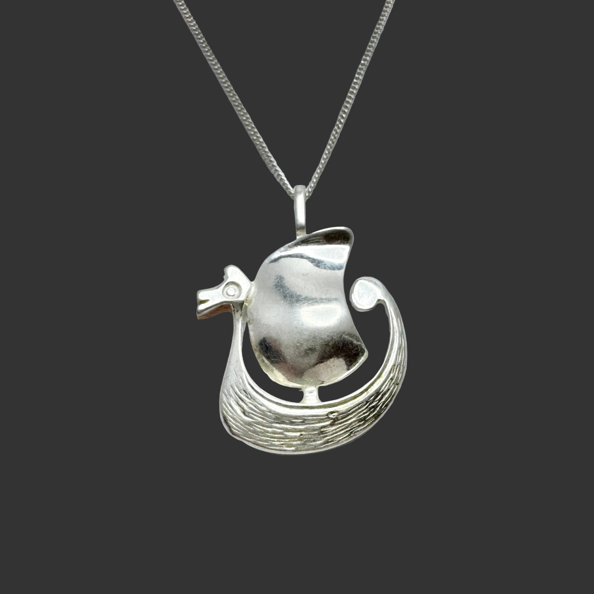 Denmark / Norway. Vintage Solid Silver Viking Ship Pendant Unisex Necklace