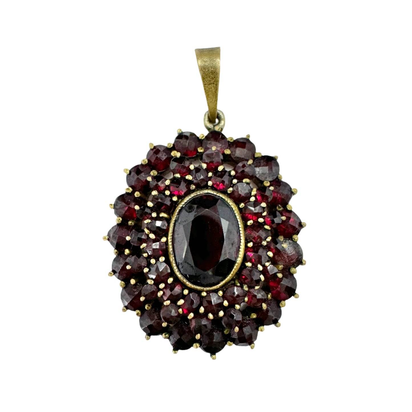 Early 1900s. Vintage Bohemian Garnet Gilt Metal Pendant.