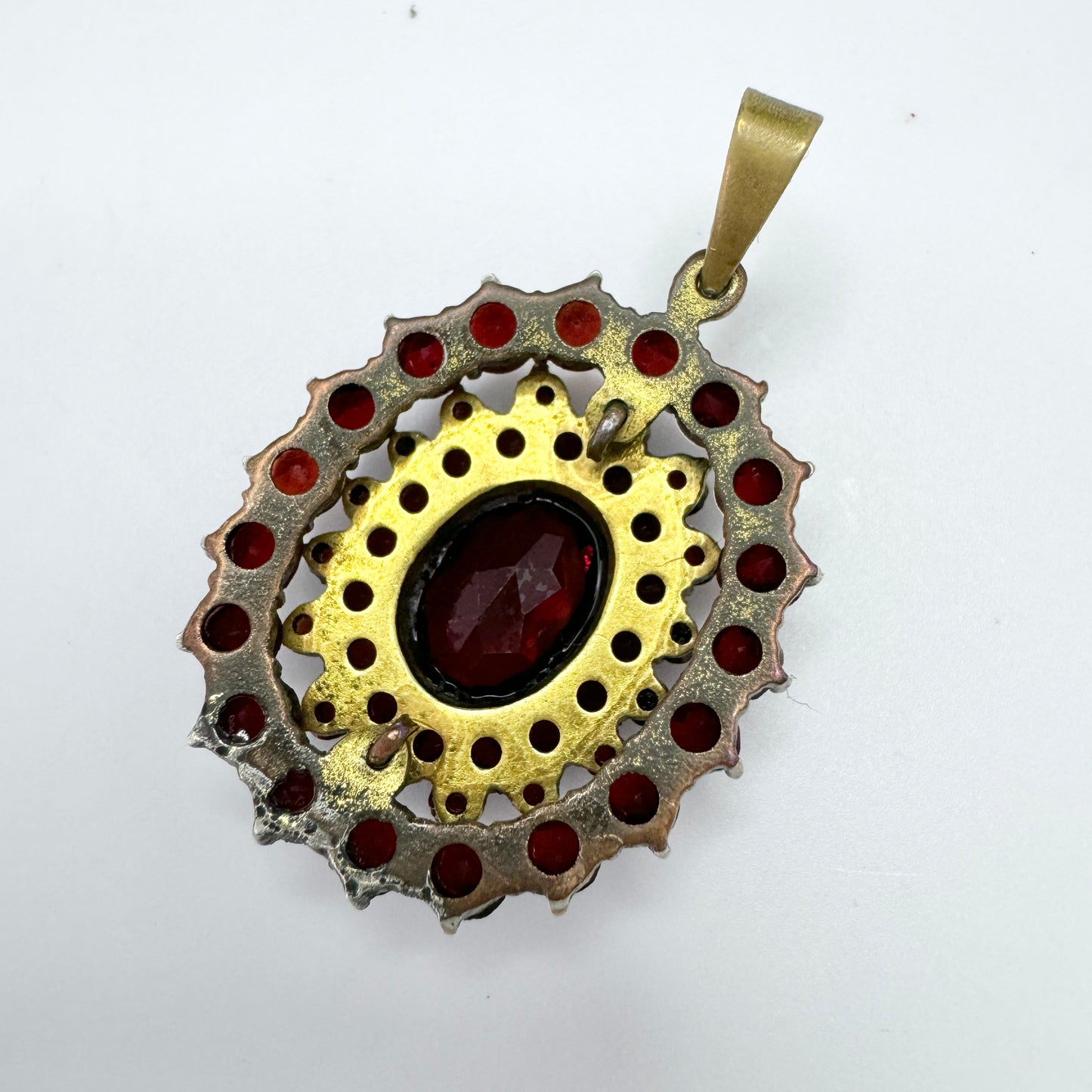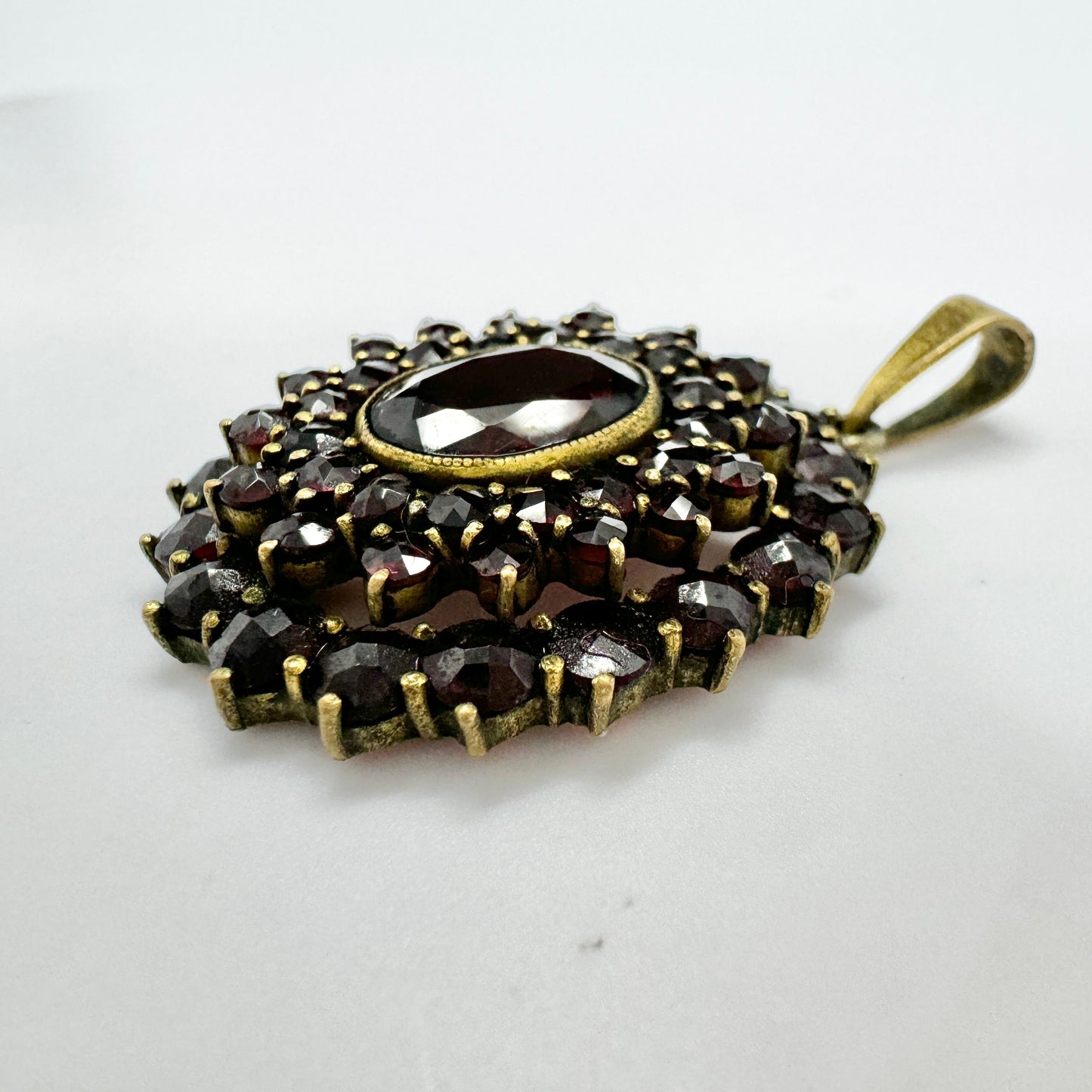 Beautiful vintage/antique gilt metal bohemian garnet pendant. Continental Europe early 1900s.