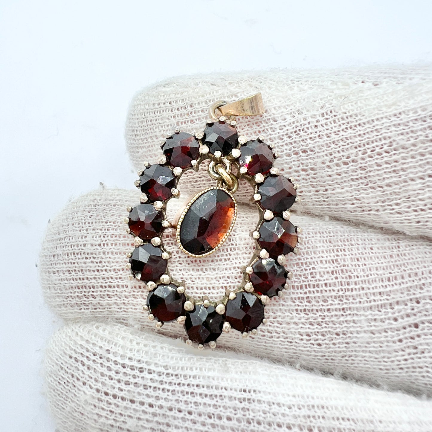 Early - Mid 1900s Gilt Solid Silver Bohemian Garnet Pendant