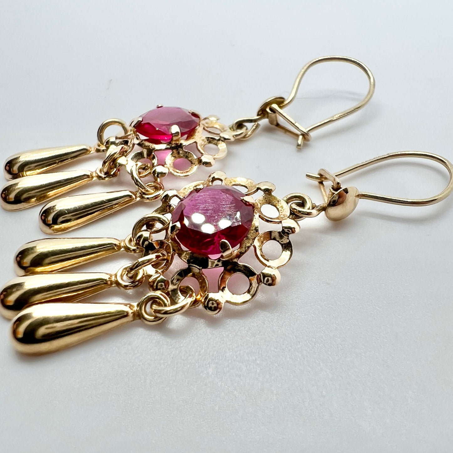 Eastern Europe. Vintage 14k Gold Synthetic Sapphire Earrings.