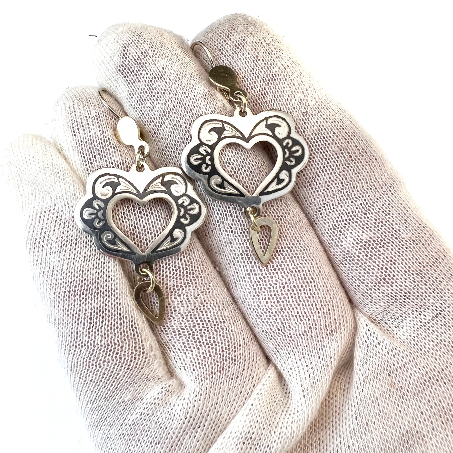 Eastern Europe. Vintage Sterling Silver Niello Enamel Earrings.