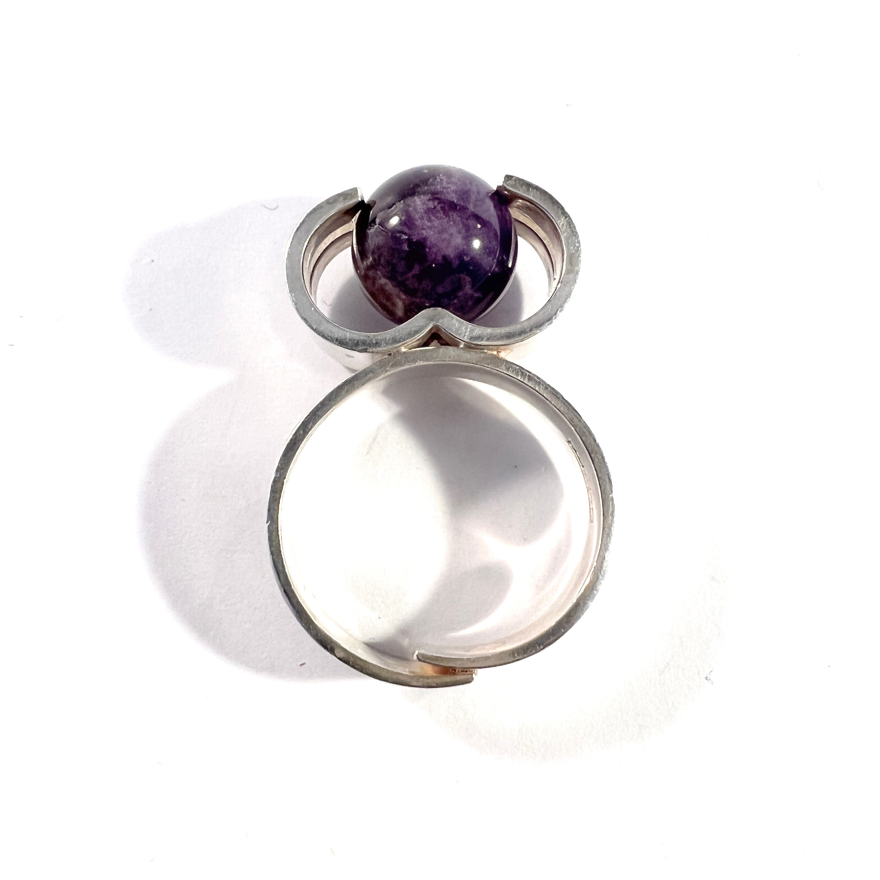 Elis Kauppi, Kupittaan Kulta Finland 1950-60s. Sterling Kinetic Amethyst Ring.