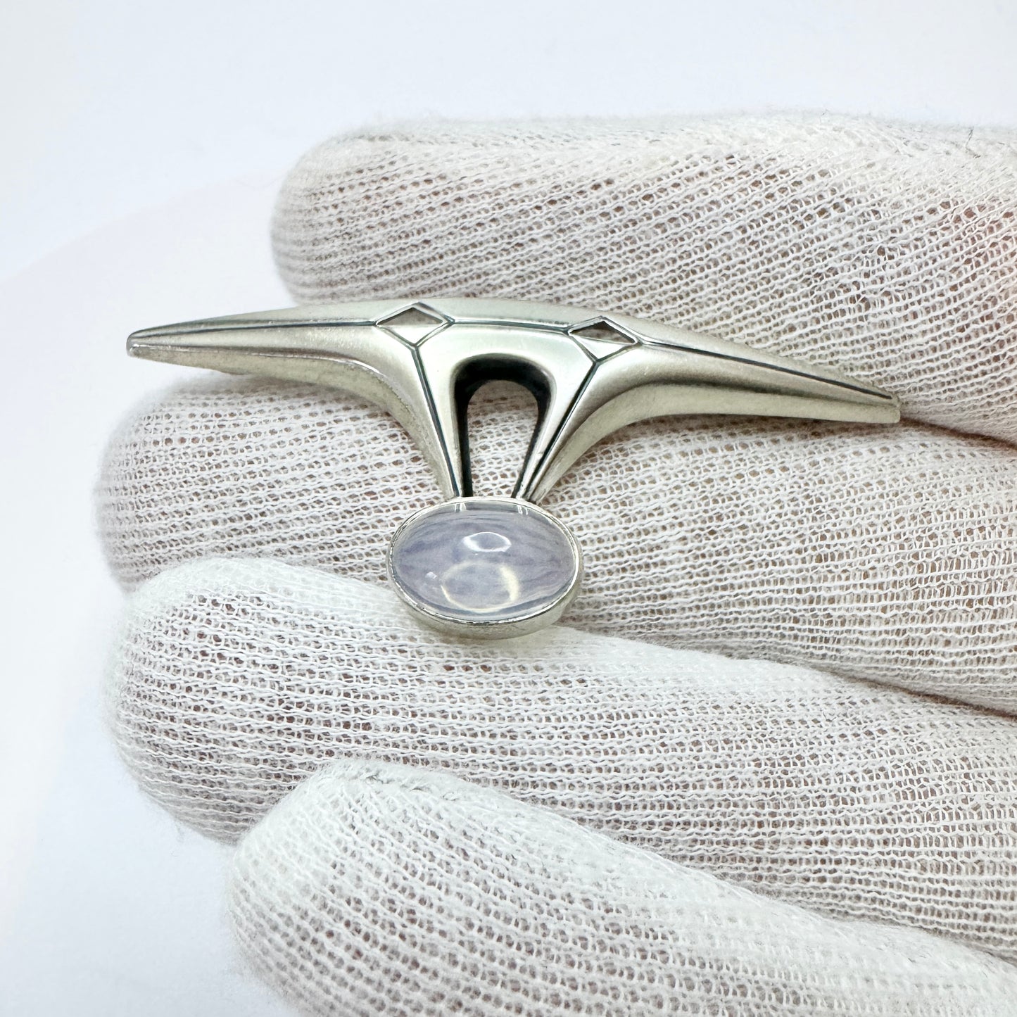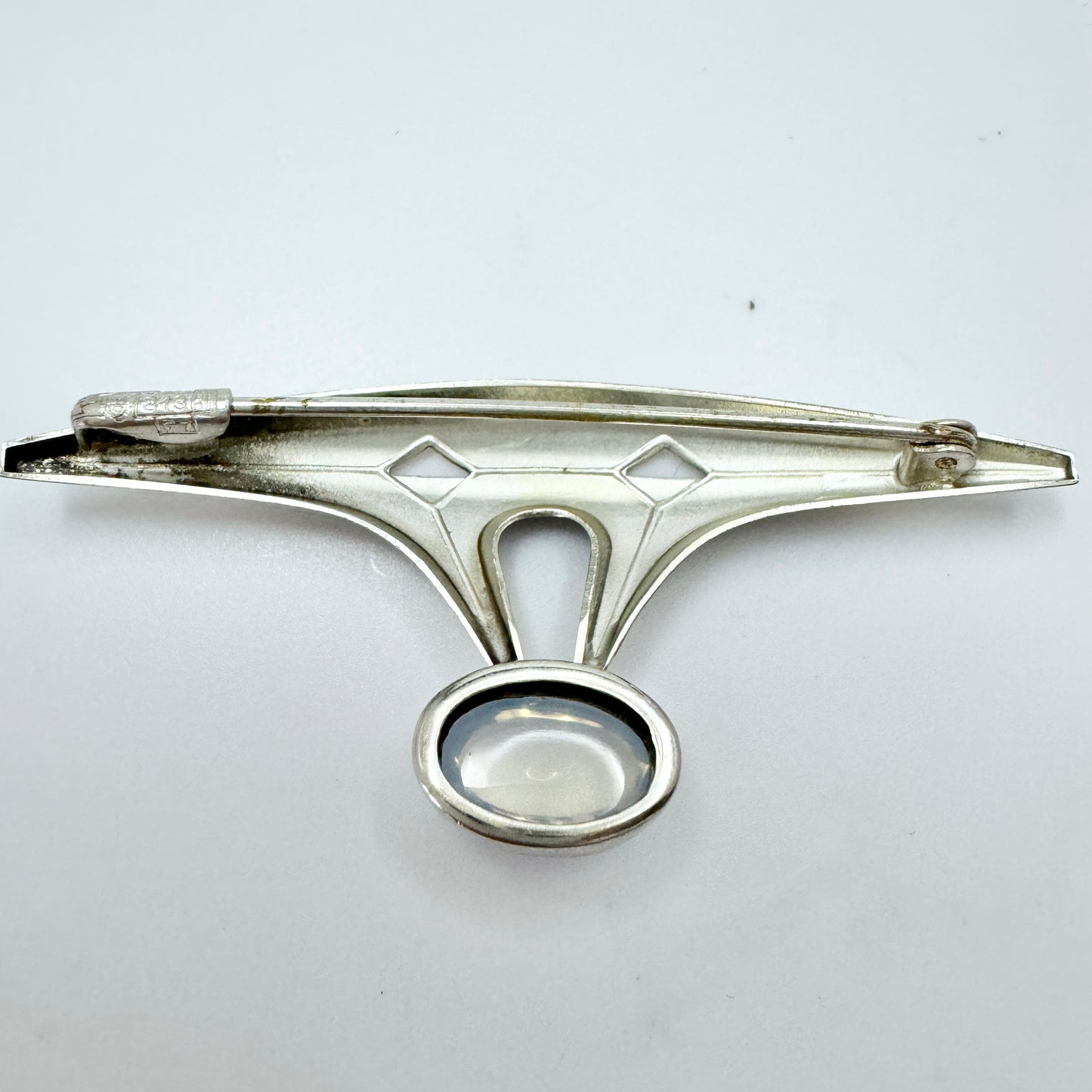 Elis Kauppi, Kupittaan Kulta Finland 1959. Vintage Solid Silver Moonstone Brooch.