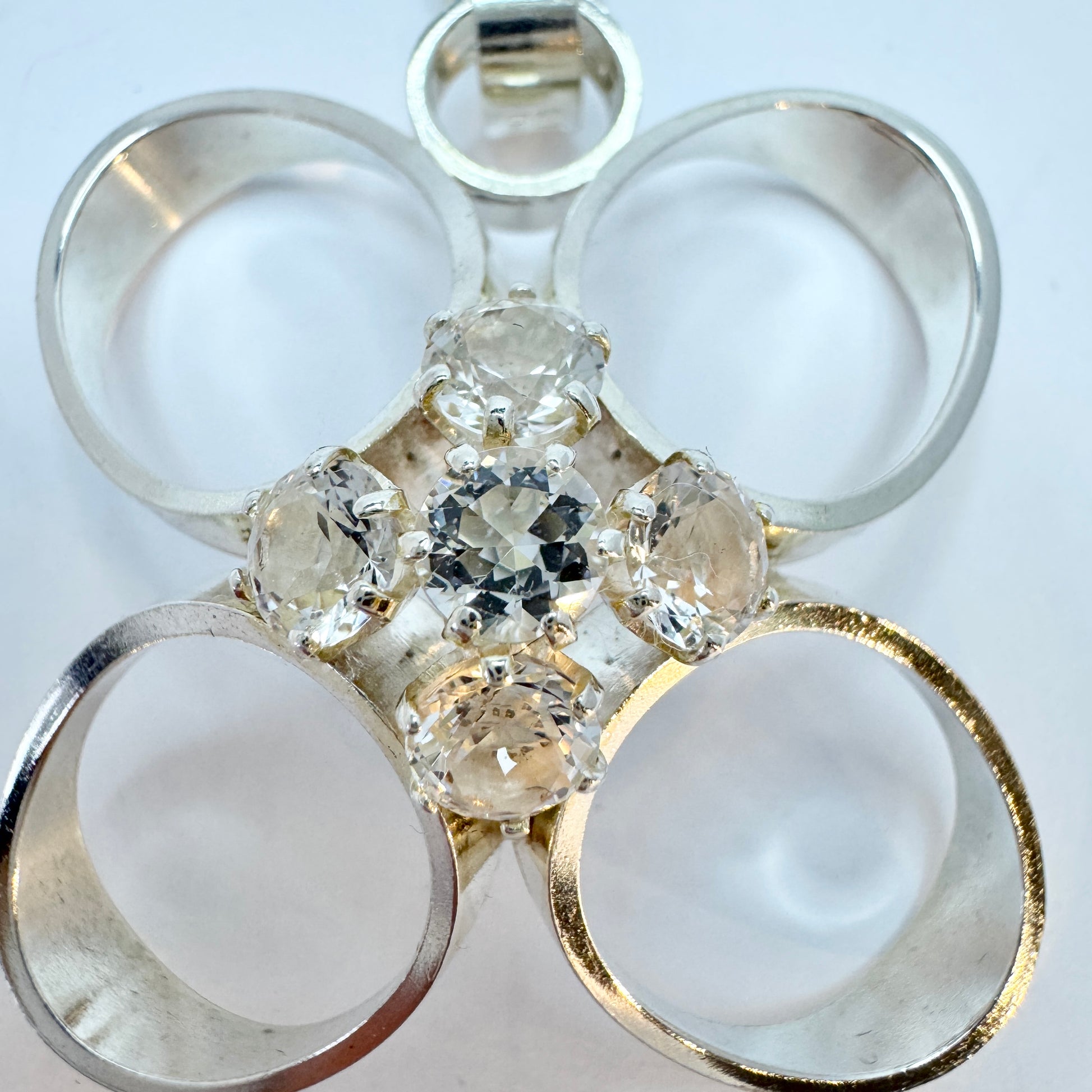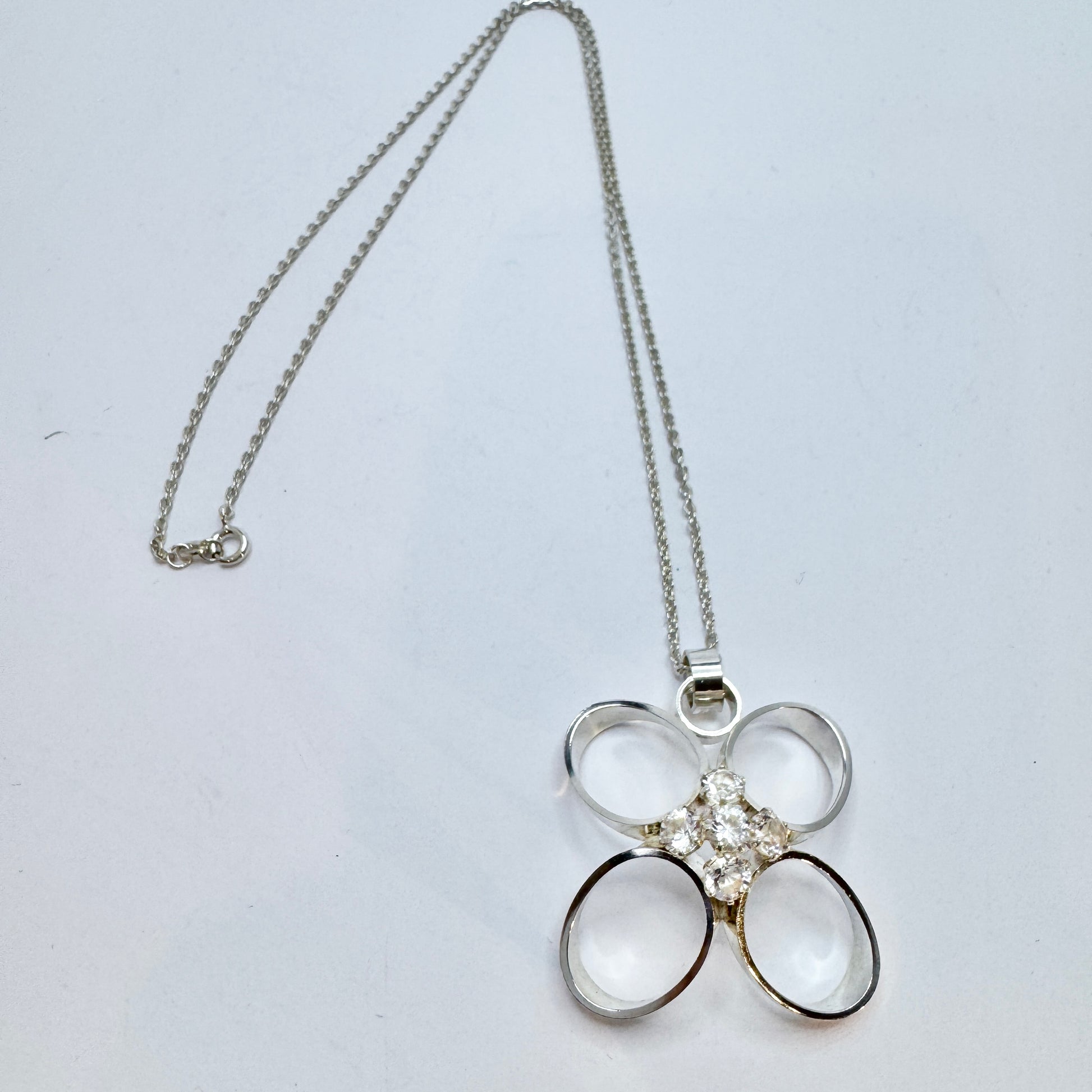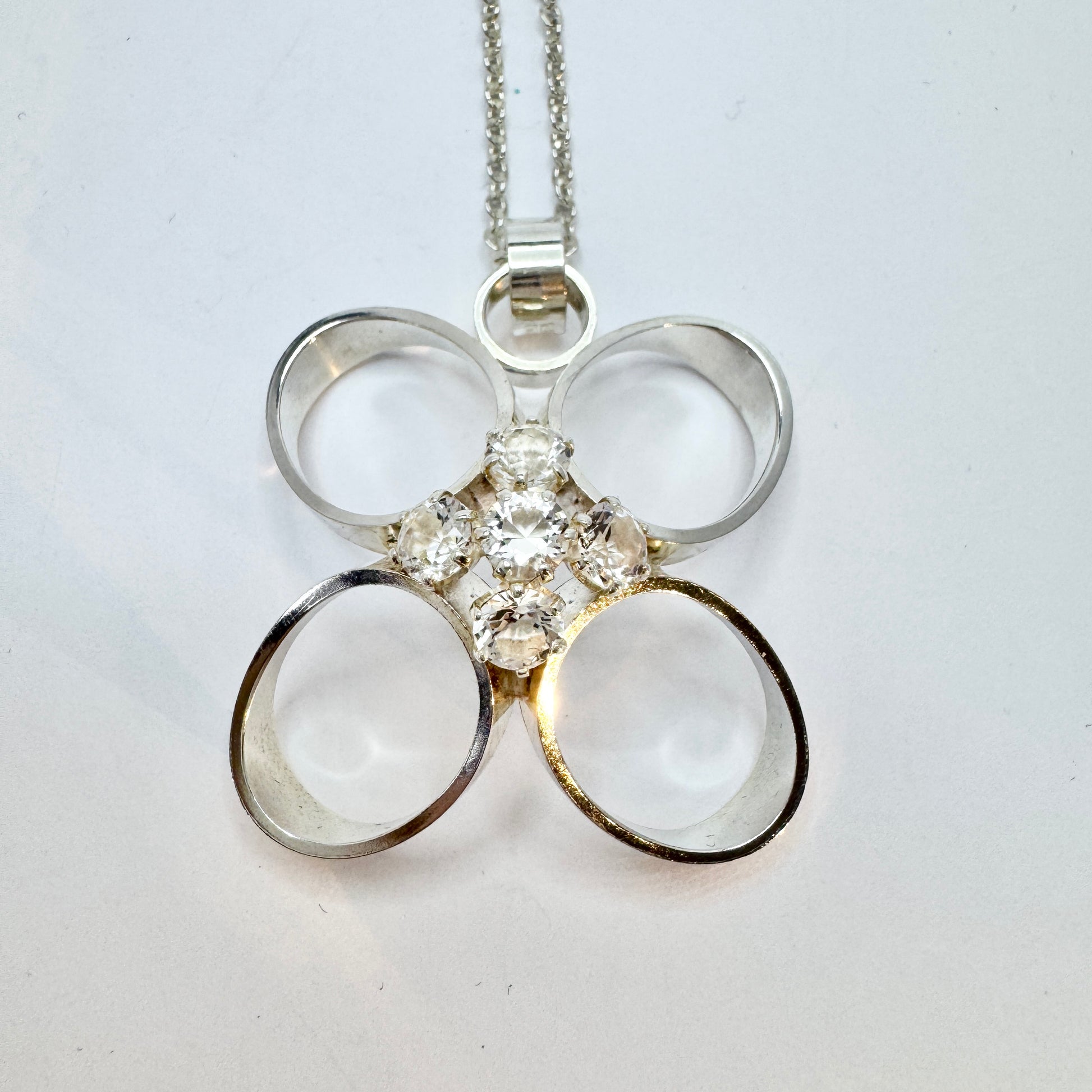 Elis Kauppi, Kupittaan Kulta Finland 1960s. Vintage Sterling Silver Rock Crystal Pendant Necklace.