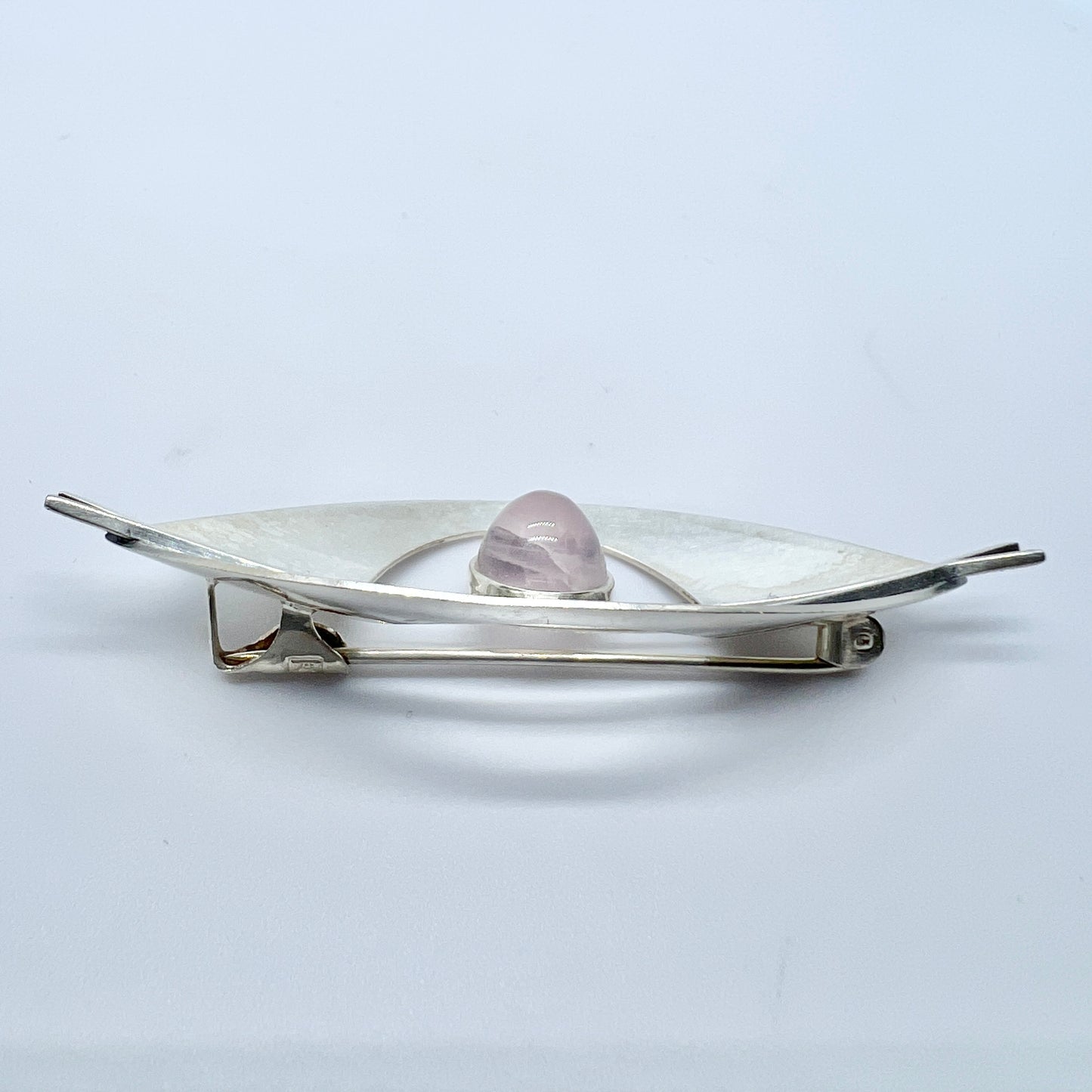 Elis Kauppi, Kupittaan Kulta Finland 1961 Vintage Solid Silver Rose Quartz Brooch.