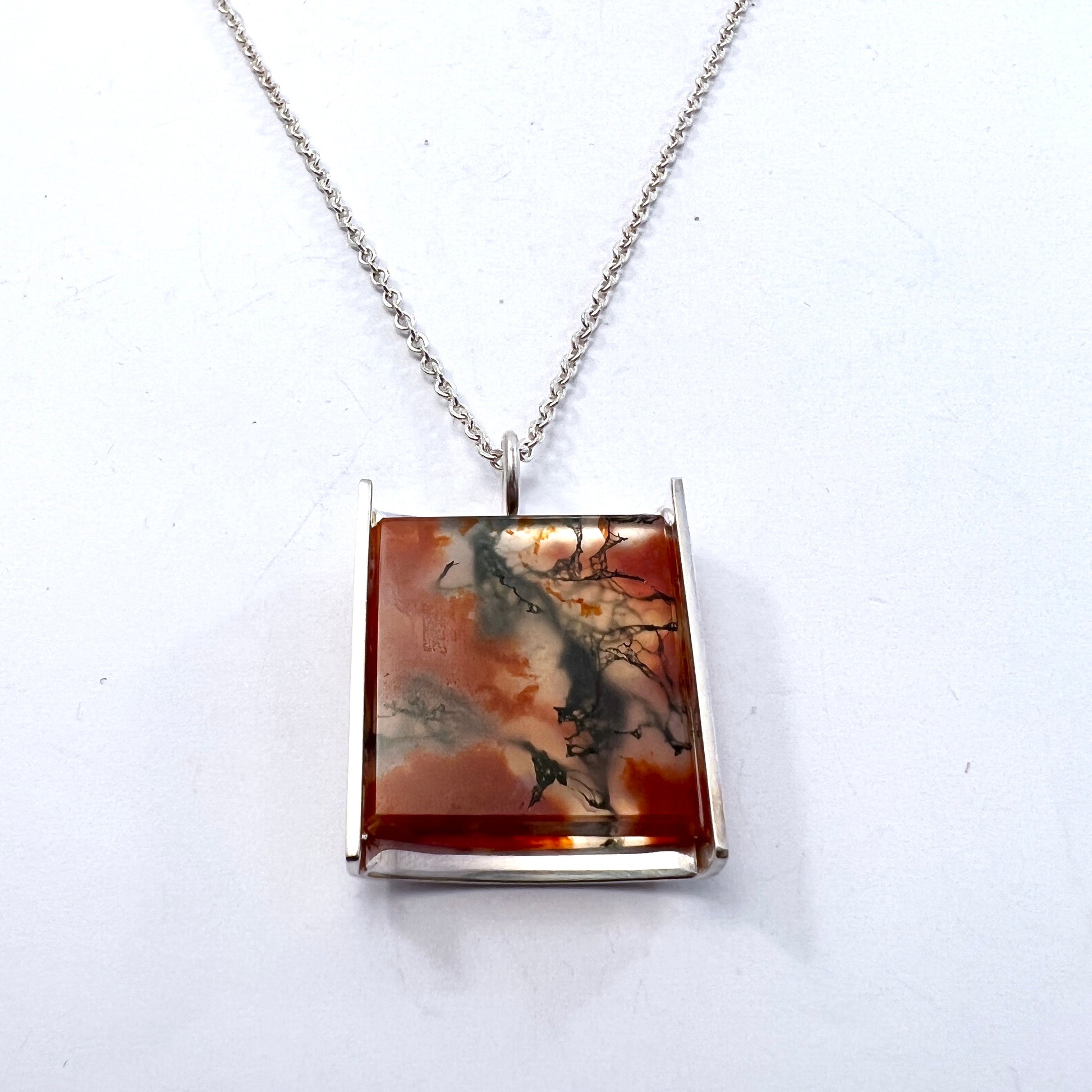 Elis Kauppi, Kupittaan Kulta Finland 1963. Solid Silver Moss Agate Pendant Necklace.
