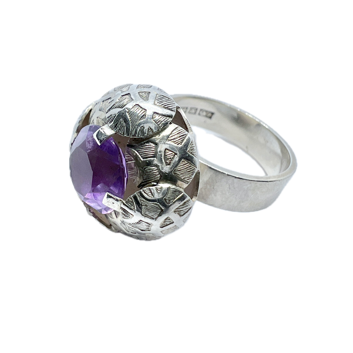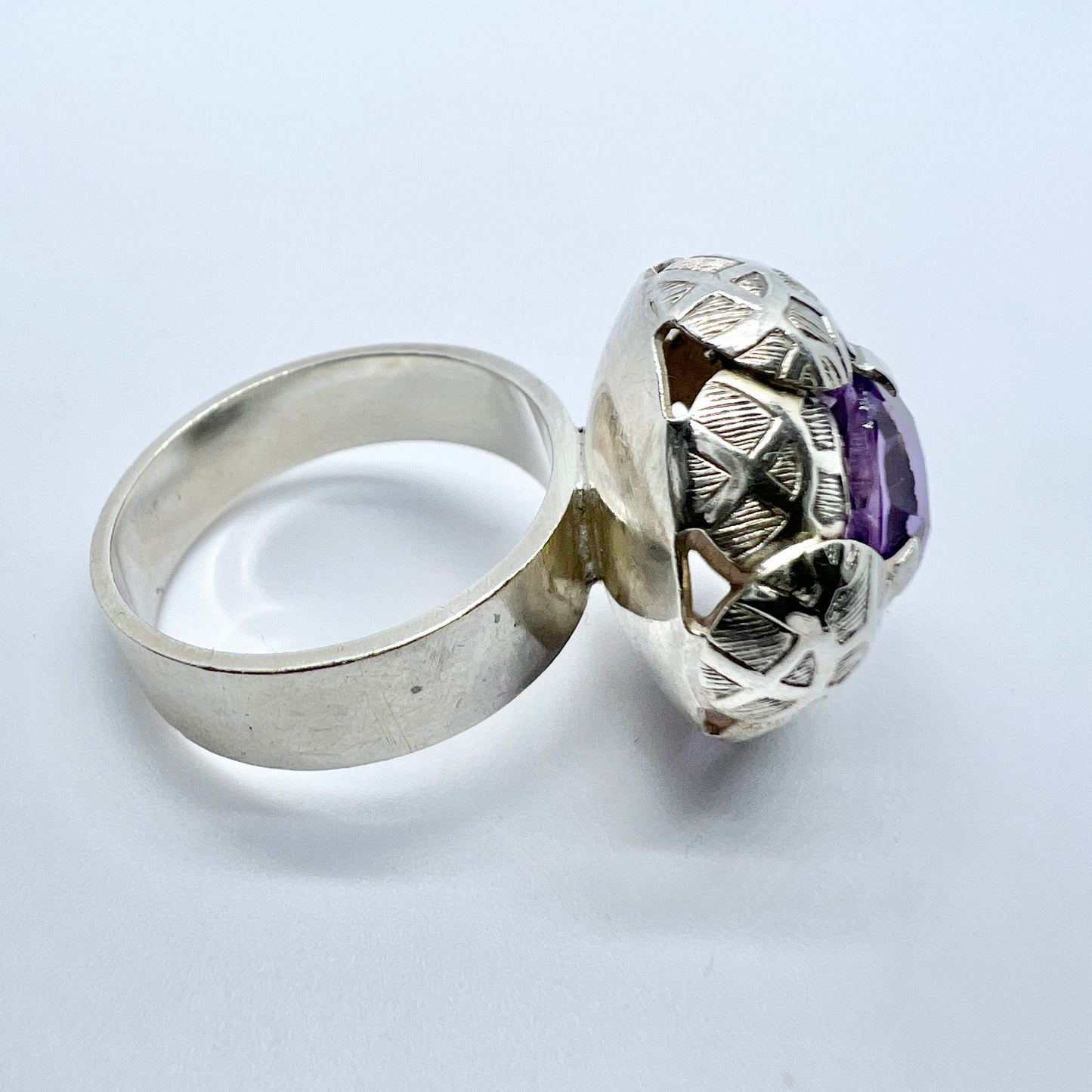 Elis Kauppi, Kupittaan Kulta Finland 1969. Vintage Sterling Silver Amethyst Ring.