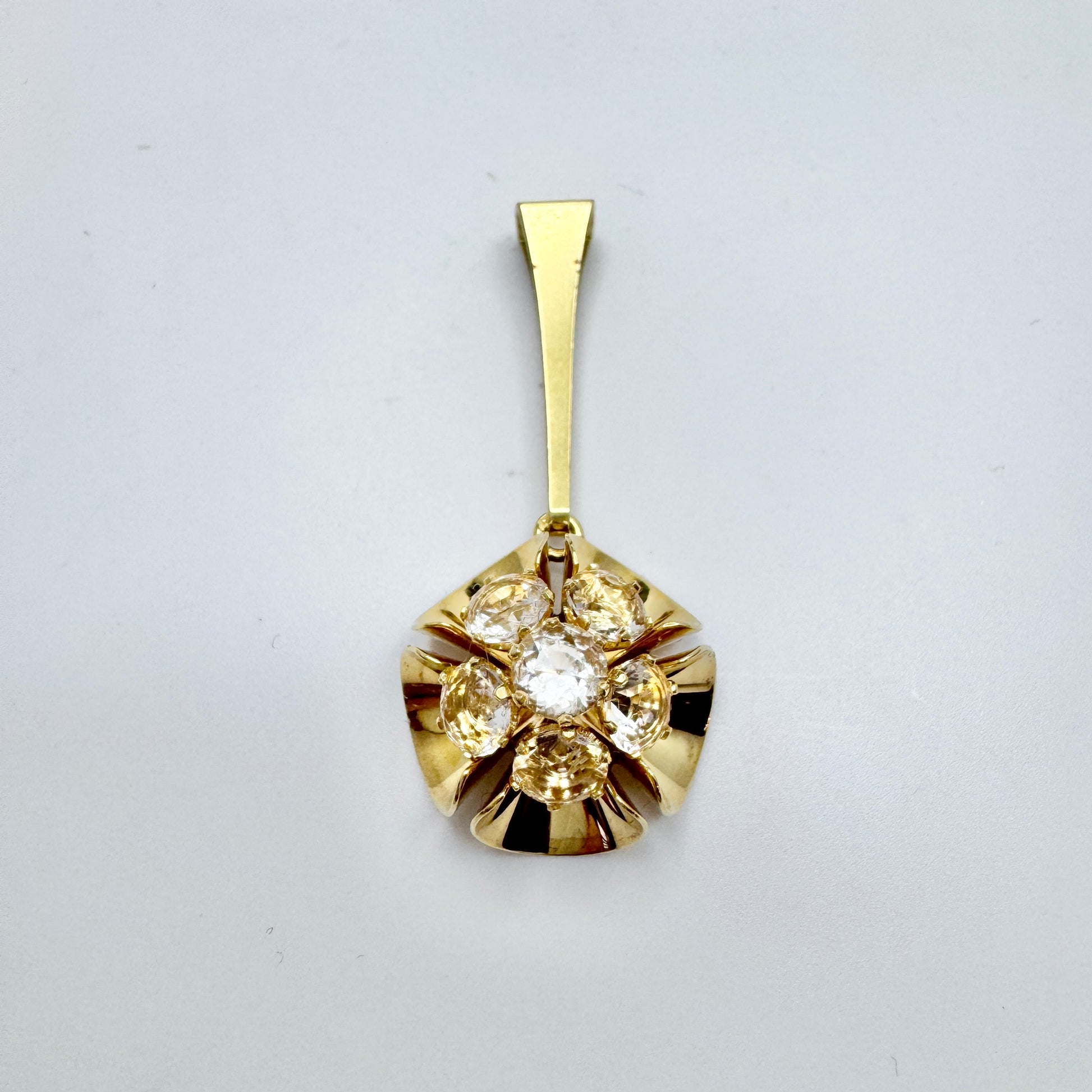 Elis Kauppi, Kupittaan Kulta Finland c 1960s. Vintage 18k Gold Rock Crystal Pendant.
