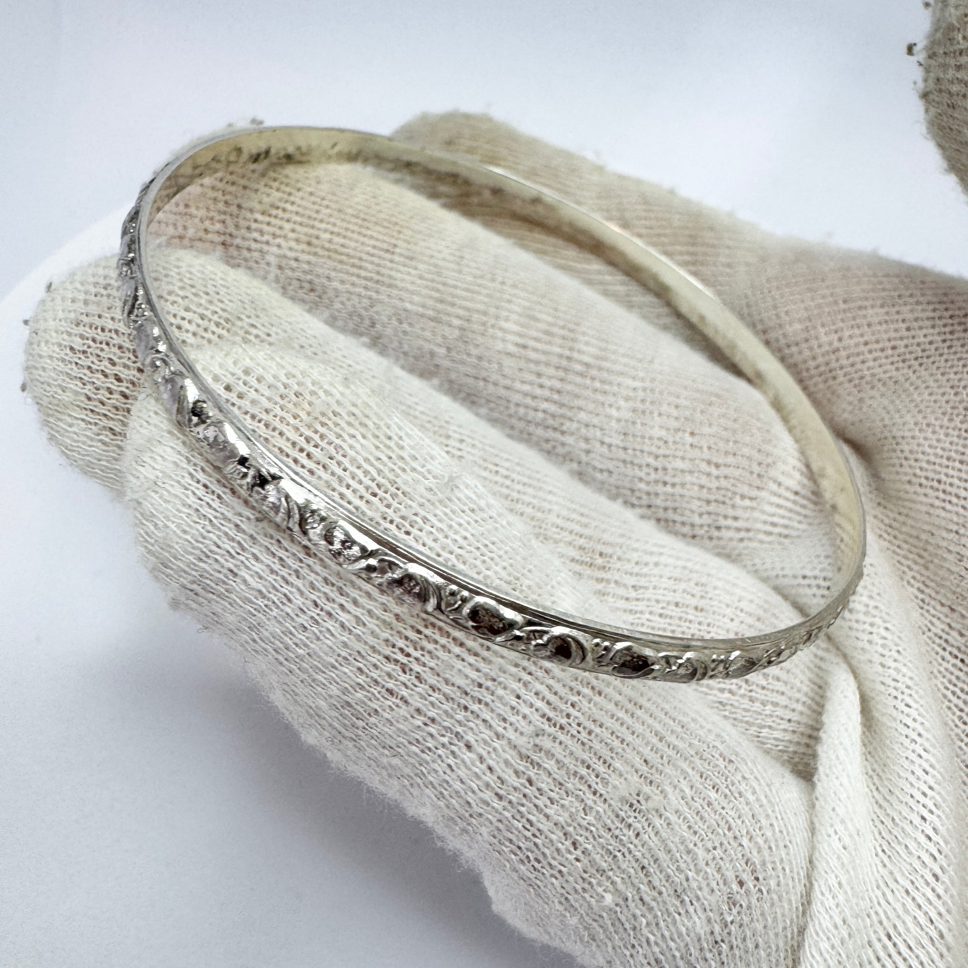 Very charming vintage solid silver bangle bracelet. Hallmarked for Erik Granit, Finland year 1967.