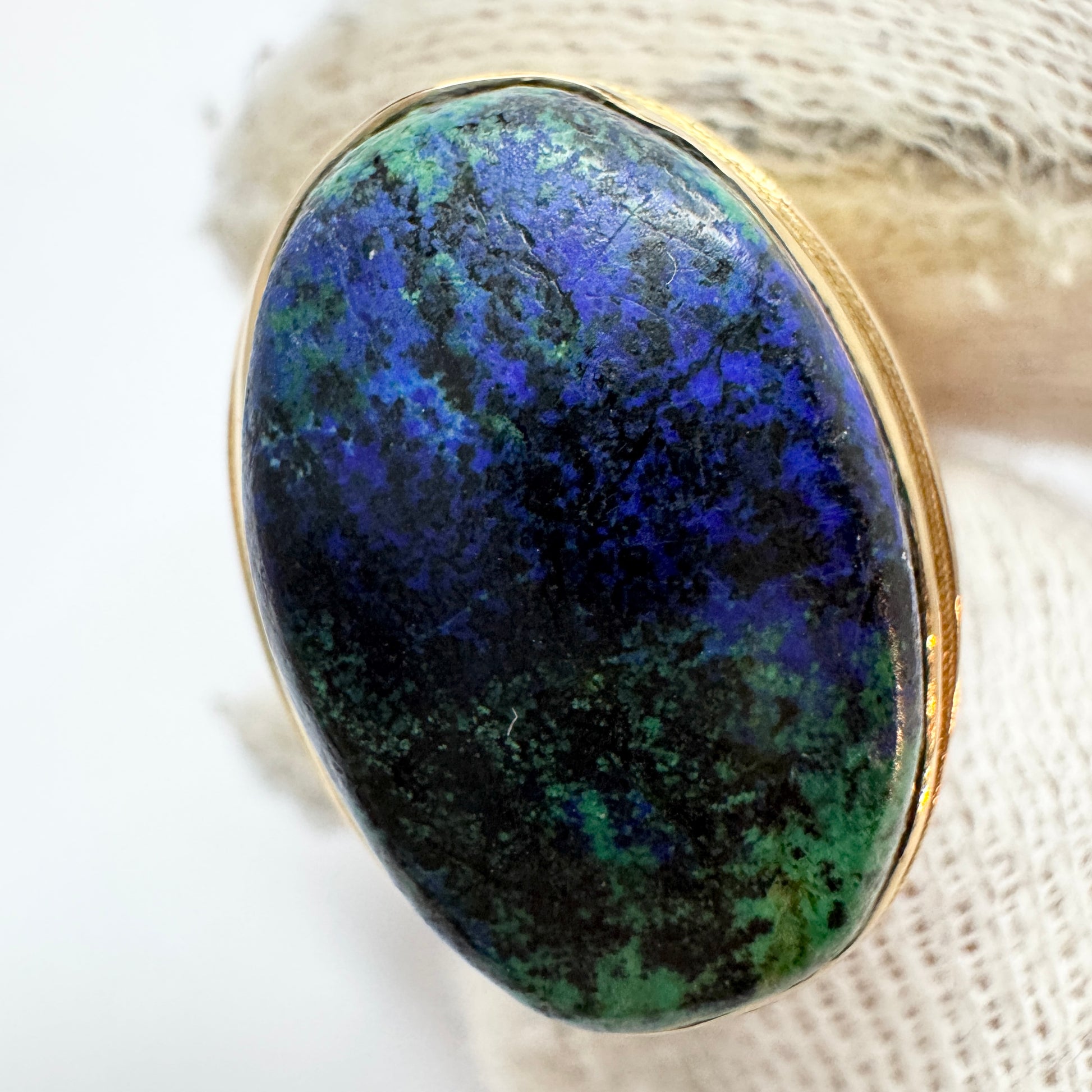 Wonderful and bold vintage 18k gold azurite ring. Hallmarked for 18k gold, Erik Wahlbeck, Sweden year 1977.