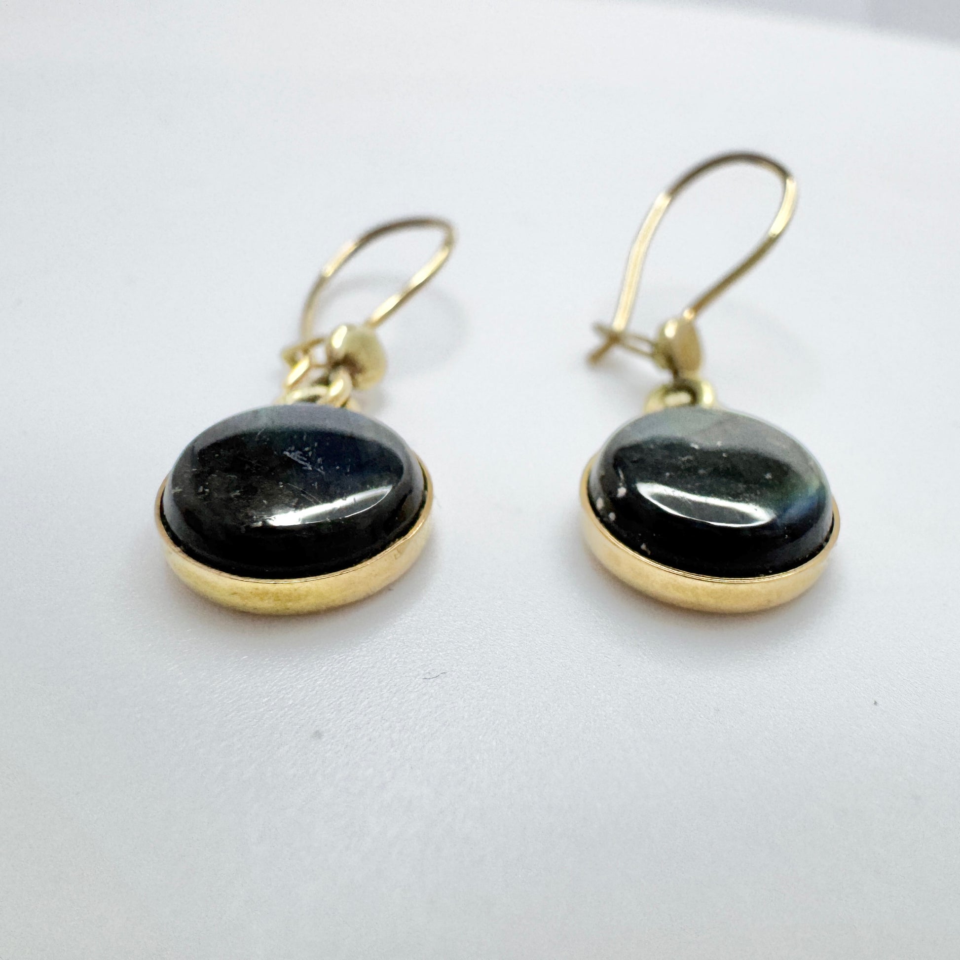 Finland. Vintage 14k Gold Spectrolite Earrings.