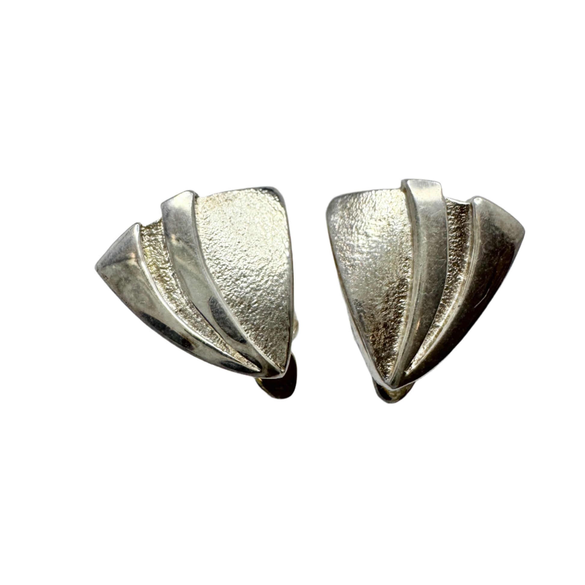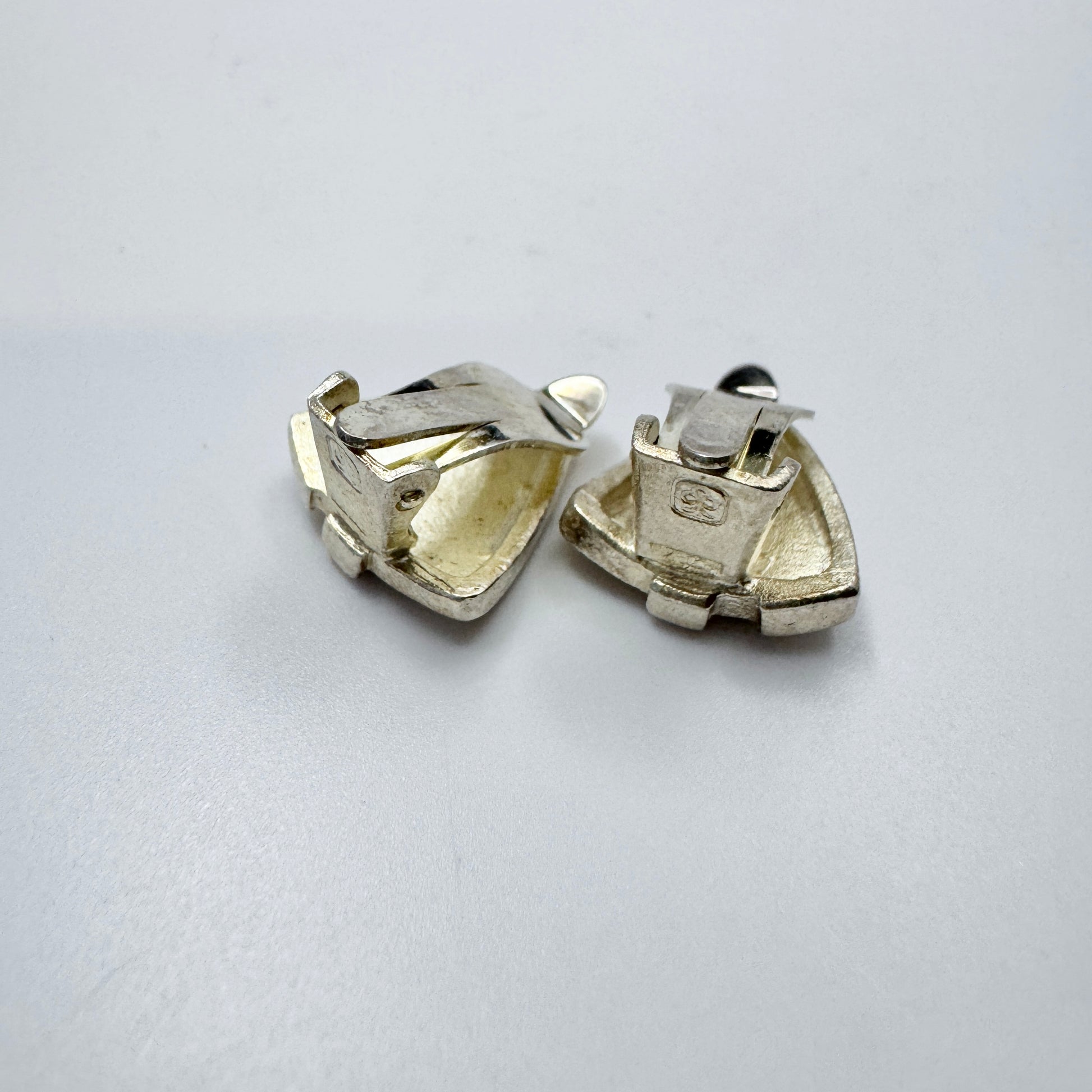 Charming vintage sterling silver clip-on earrings. Unidentified Finnish makers mark, ca 1980s.