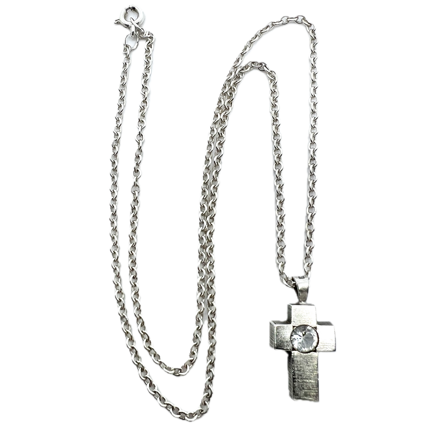 Finnfeelings, Finland Vintage Solid Silver Rock Crystal Cross Pendant Necklace.