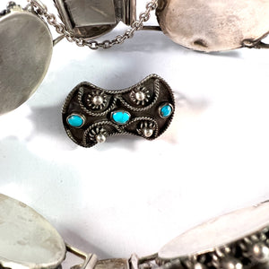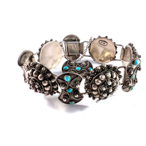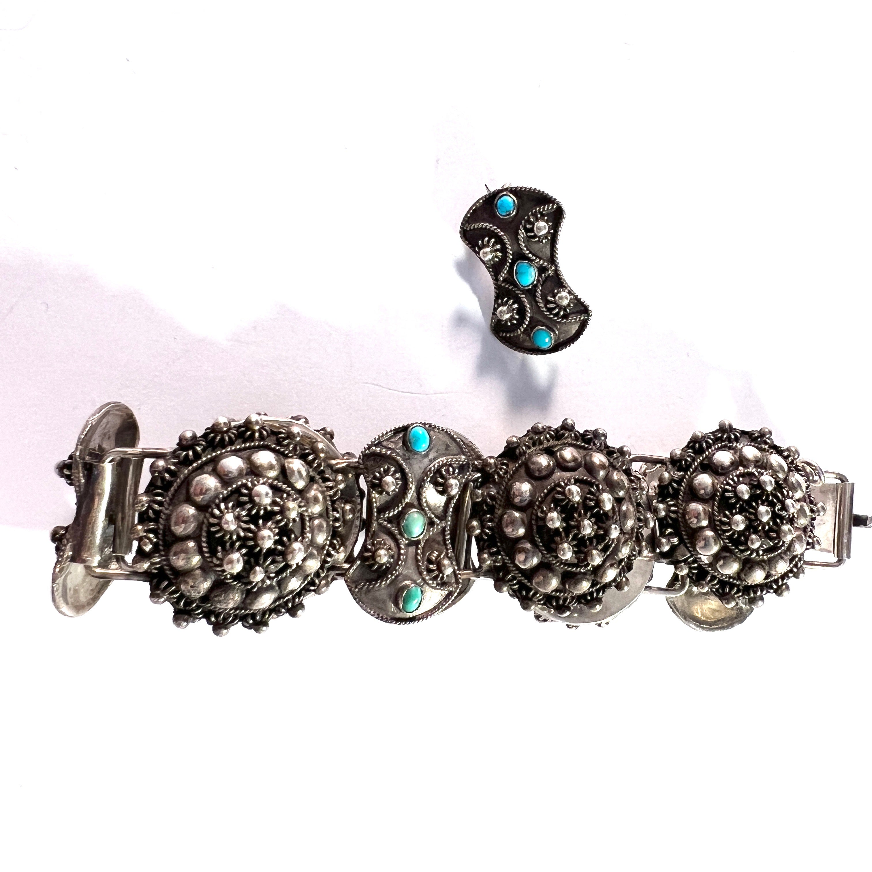 Firenze, Italy 1934-44. Vintage 800 Silver Turquoise Etruscan Revival Bracelet + Brooch