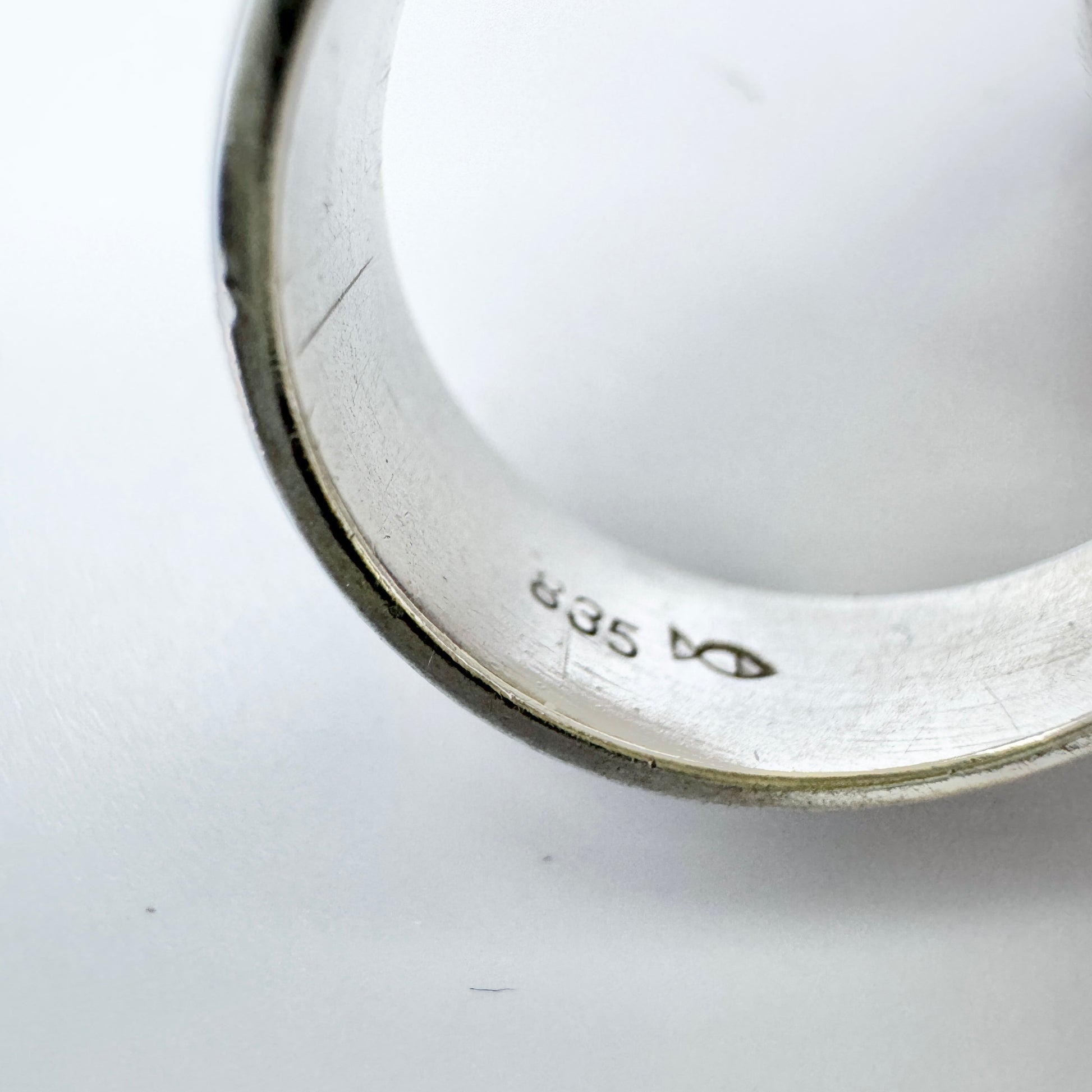 Fischland Ostseeschmuck, Germany c 1970s. Vintage Solid Silver Amber Ring.