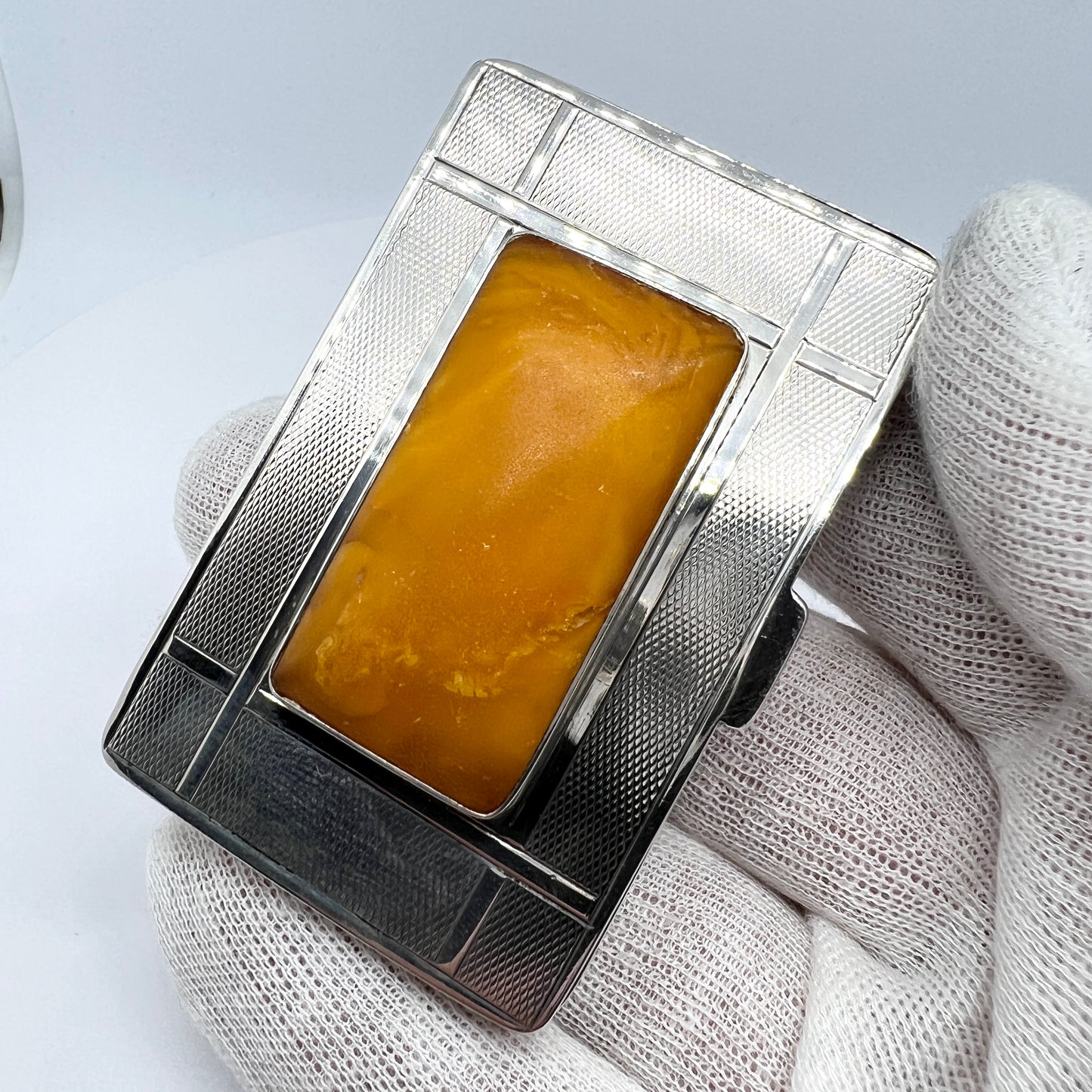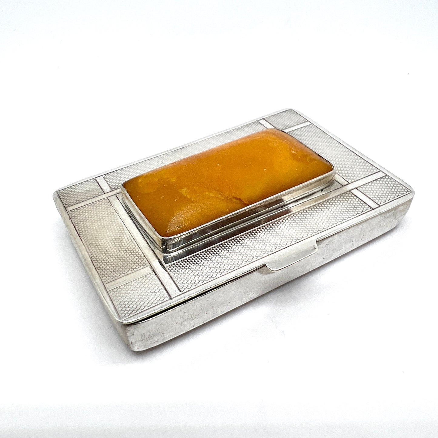 Wonderful and rare art deco solid 830 silver large amber stone box. Hallmarked for maker Forster & Graf, Germany 1920-30s.