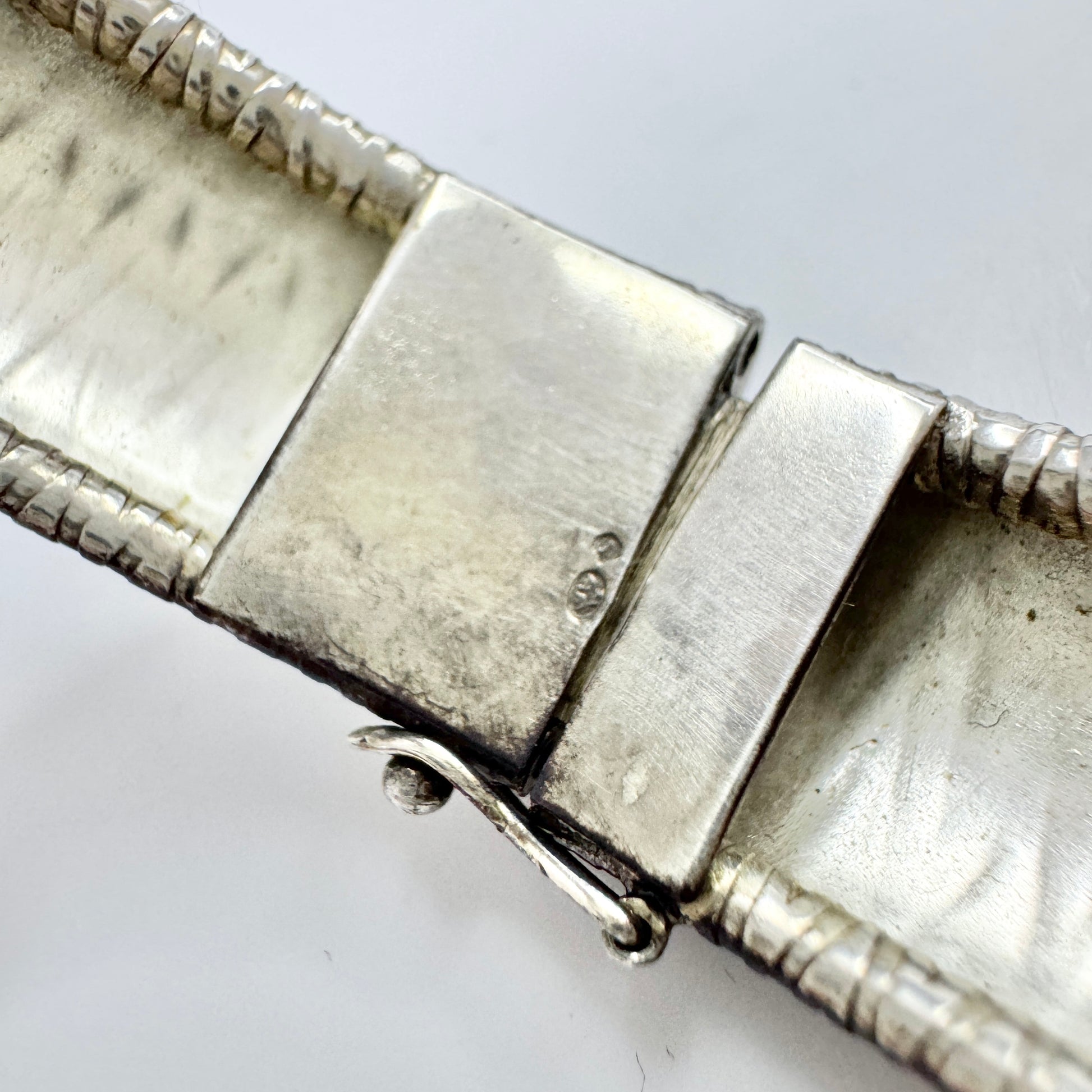 Wonderful vintage solid silver hinged bangle bracelet. Hallmarked for Friedrich Speidel, Germany ca 1950s. Also with Swedish import marks.
